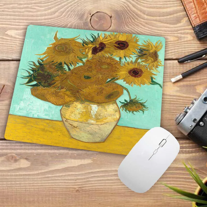 Большая рекламная акция, игровой коврик Ван Гога для геймеров, резиновый коврик для мыши с цветком, маленький размер 18x22 см, игровые коврики для мыши, коврик для офисного стола