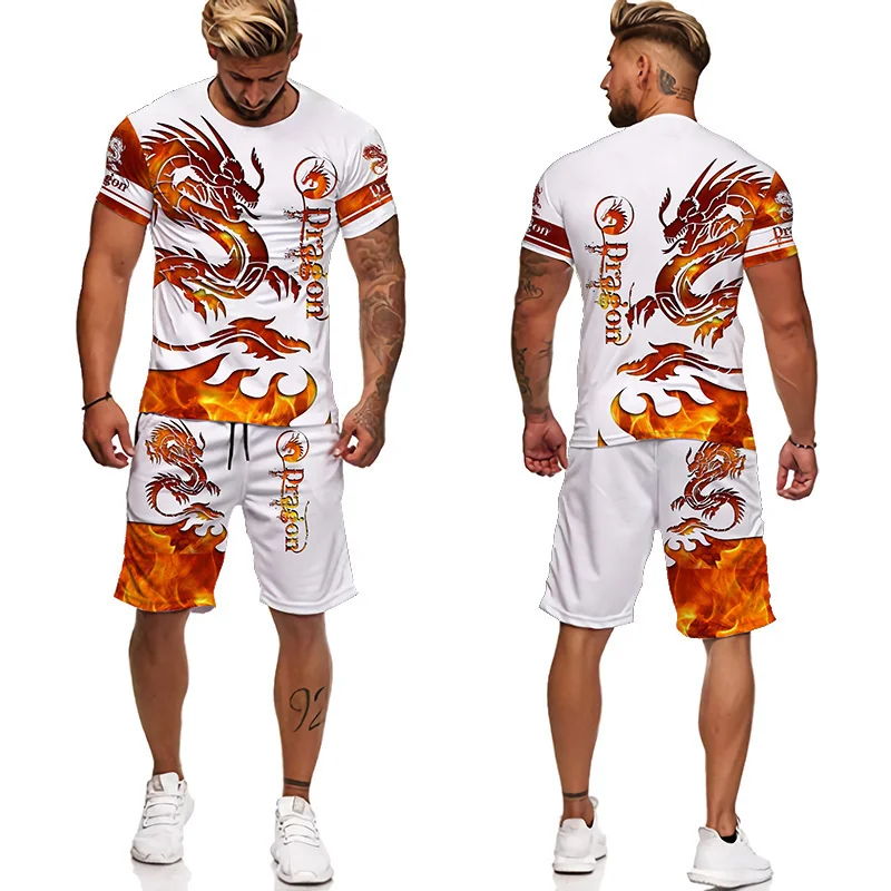 Отзывы о Футболка летающий дракон мужская с 3D принтом Модный комплект из двух предметов