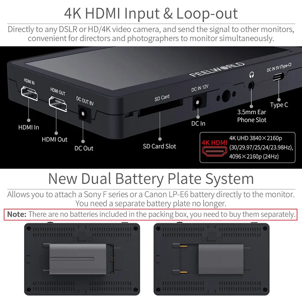 FEELWORLD F6 Плюс обновление до версии V2, Размер экрана Обновление от 5,5 дюймов до 6 дюймов