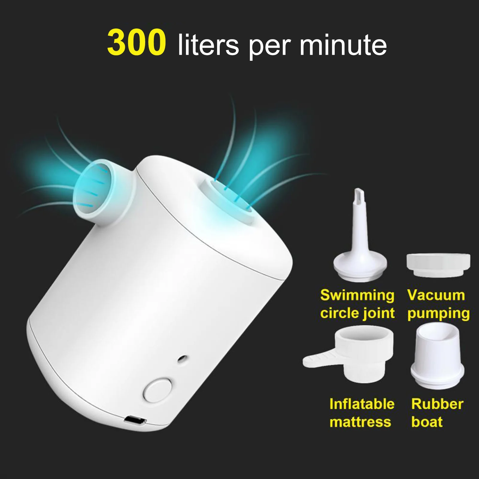 1 X Air Pump 4 X Connector 1 X Charging Cable 1 X Storage Bag 1 X Instruction