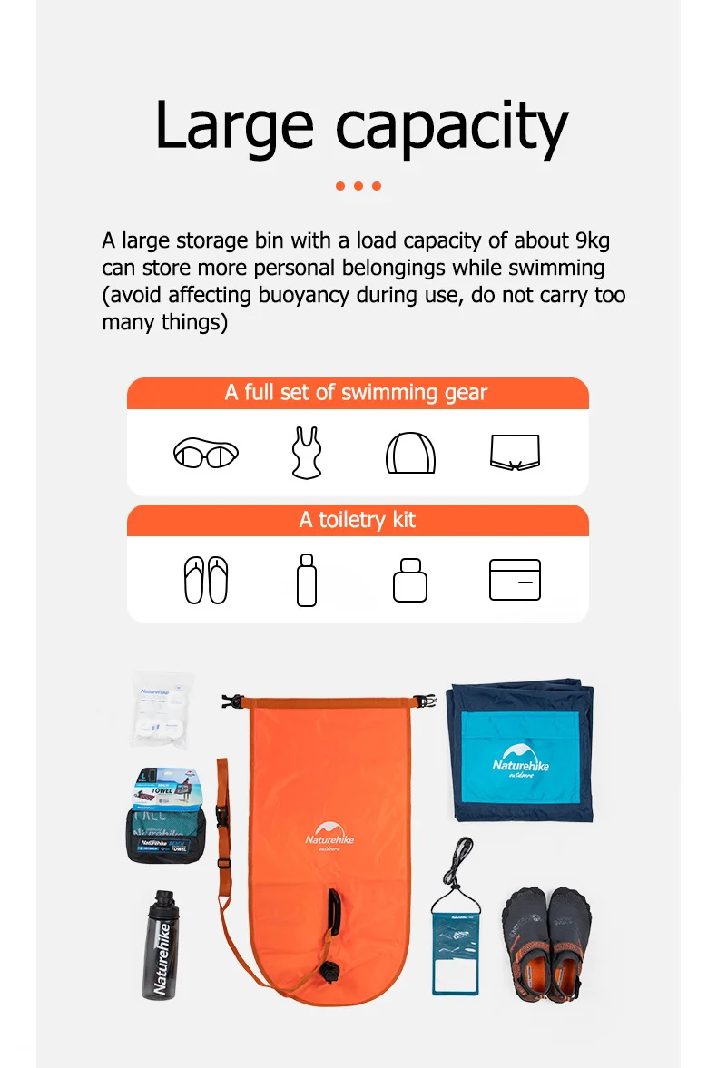 Большое пространство для хранения, может вместить около 9 кг одежды и других вещей. Дизайн с двойной ручкой, плавание в разных положениях.