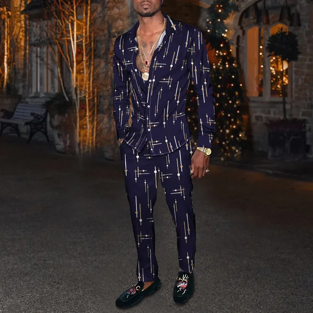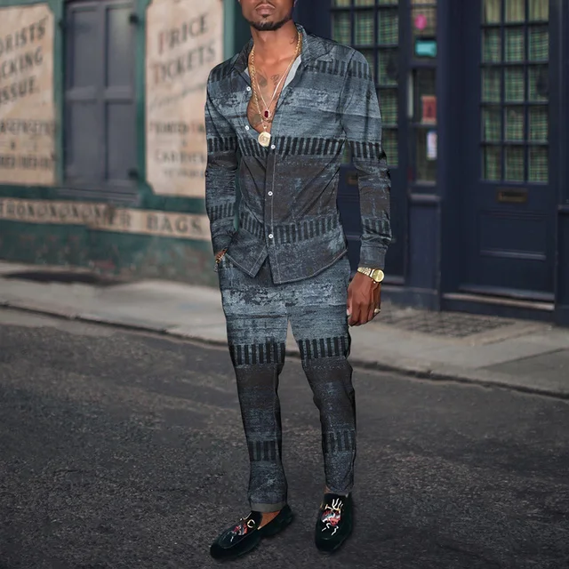 Отзывы о Мужской осенний костюм рубашка и штаны в полоску с 3D принтом 2022 - купить по
