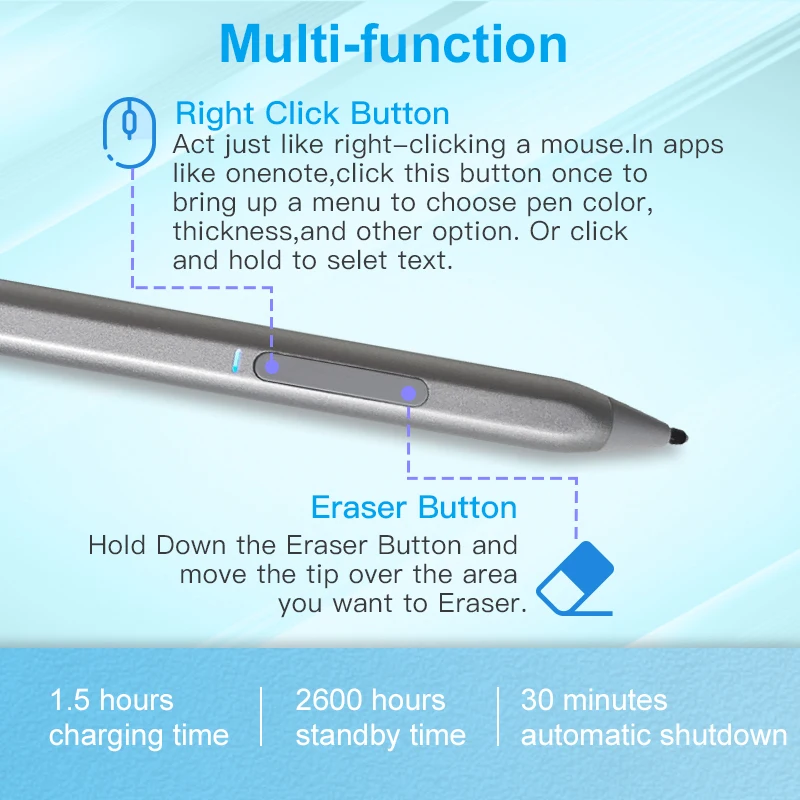 【Совместимая модель 】 стилус совместим с Microsoft Surface Pro X, Surface Pro 8/7/6/5/4/3 (не совместим с Surface pro/pro 2), Surface Book 3/2/1, surface Go 2/1, Surface Studio 2/1, Surface Laptop 3/2/1, Surface 3 tablet.