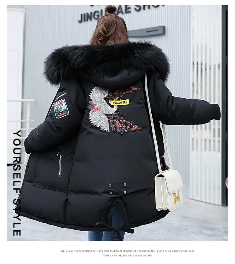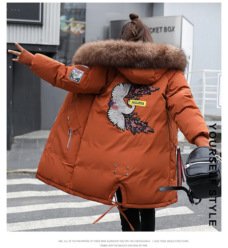 2022 зимние новые женские парки Пальто корейское свободное хлопковое пальто с капюшоном женское вышитое пальто с меховым воротником на хлопковой подкладке женская верхняя одежда