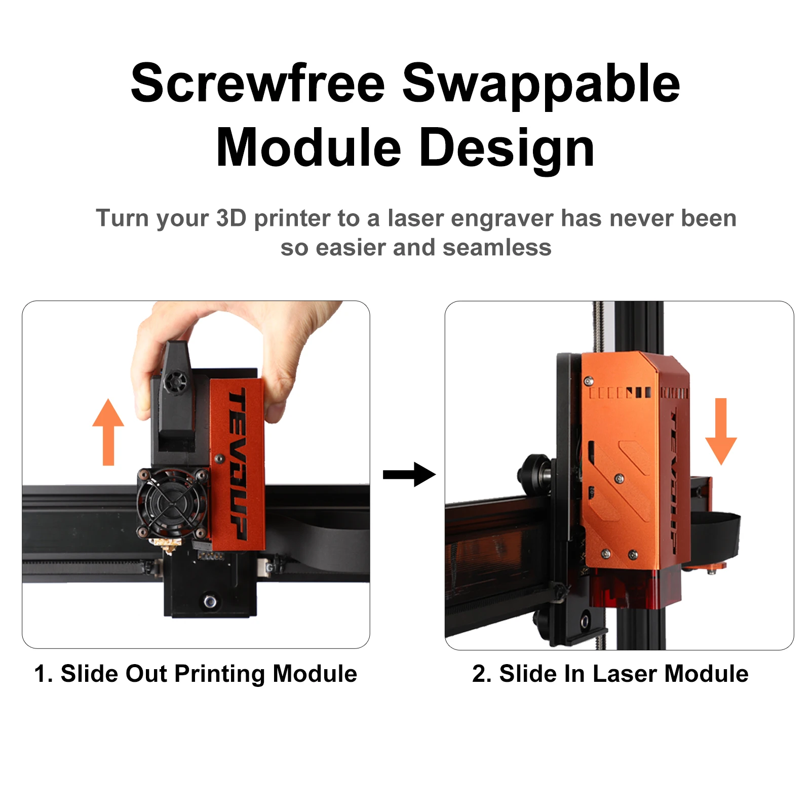 2 в 1 Функция лазерной гравировки и печати, специальная конструкция модуля, может легко Переключить лазерную головку и печатающую головку.