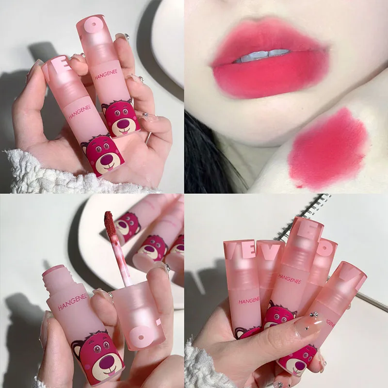 Клубничная красная глазурь для губ милый медведь бархатный матовый грязь для губ водостойкий стойкий блеск для губ увлажняющая матовая красный Лидер продаж