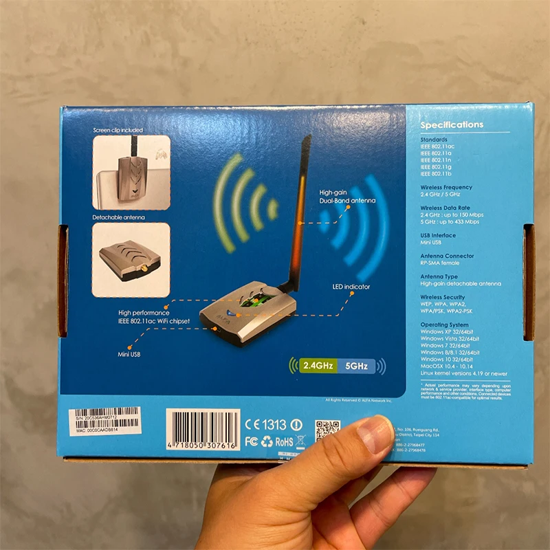 Отзывы о ALFA AWUS036ACHM Использует чипсет MT7610U двухдиапазонный 2 4G/5G60 0M беспроводная сетевая