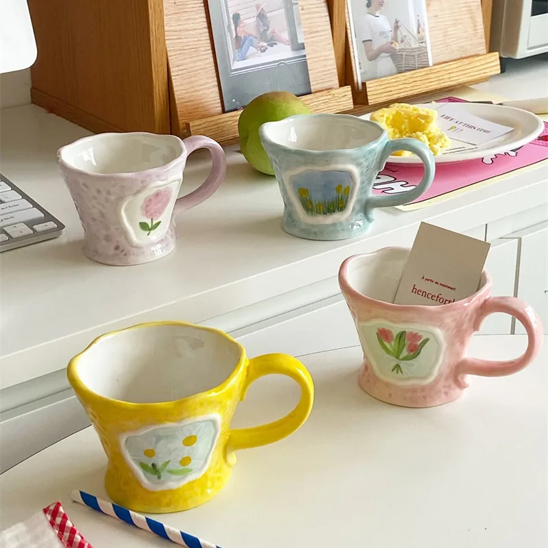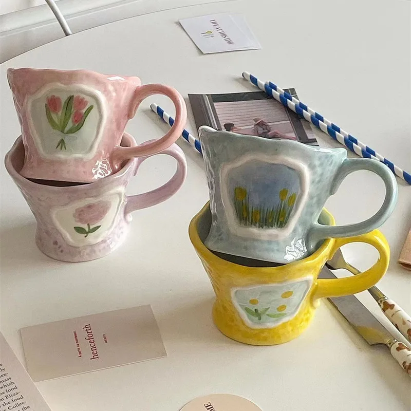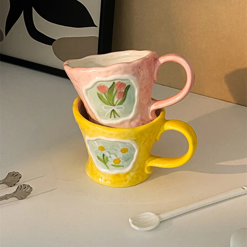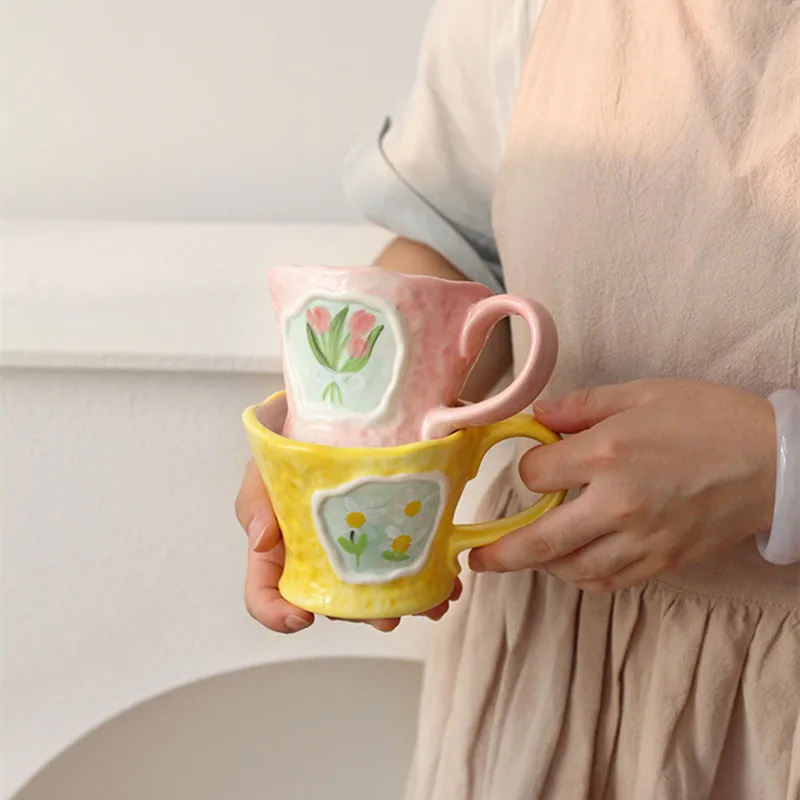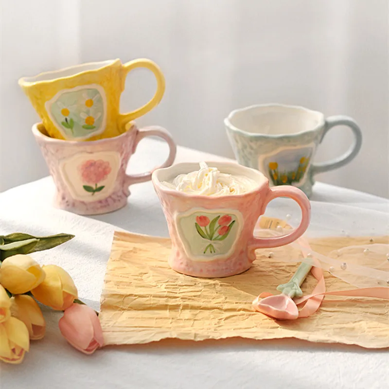 Отзывы о Керамическая кофейная кружка CuteLife в скандинавском стиле с цветами кухонная