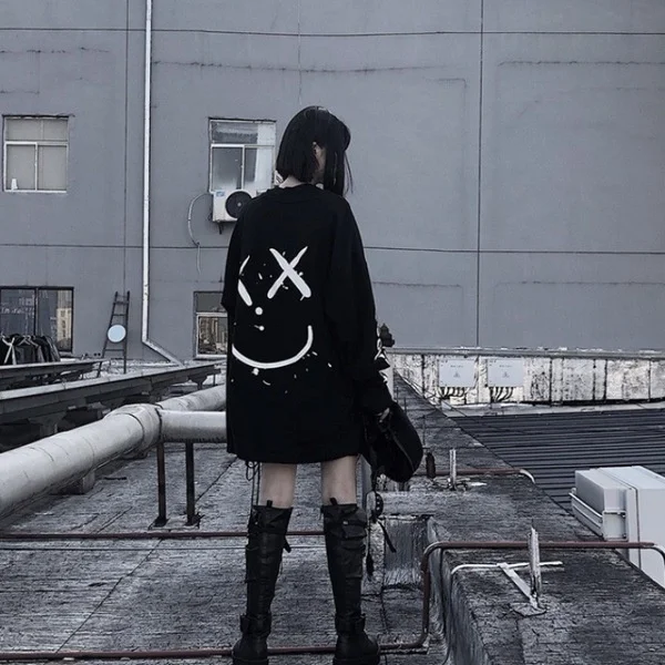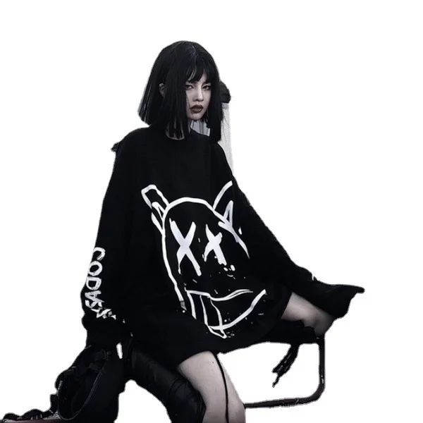 Отзывы о Женский свитер с длинным рукавом черный Свободный пуловер в готическом стиле