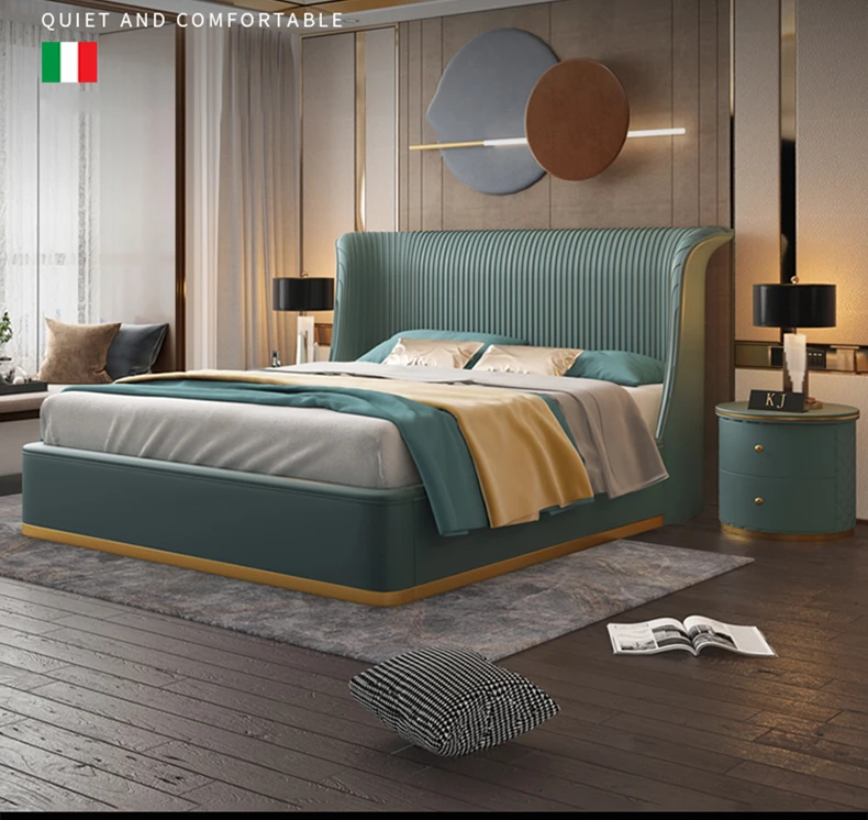 Итальянская мебель для спальни, набор королевских размеров, рама для кровати, роскошная спинка кровати в современном стиле и матрас, двуспальная кровать для взрослых, деревянная мебель