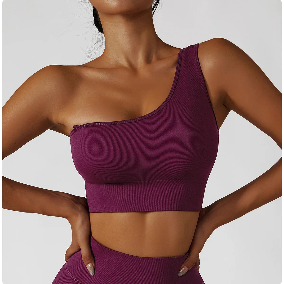 Отзывы о Бесшовный эластичный бюстгальтер для йоги с одной лямкой противоударный