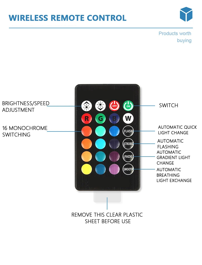 【Светодиодный светильник s】 этот светильник имеет 16 цветов, 4 режима, регулируемую яркость, дальность дистанционного управления очень далеко, до 66 футов/20 метров.
