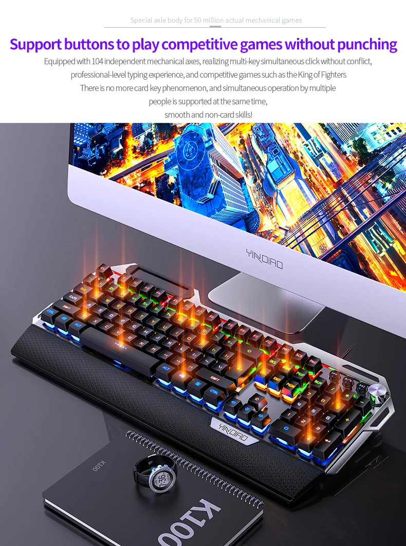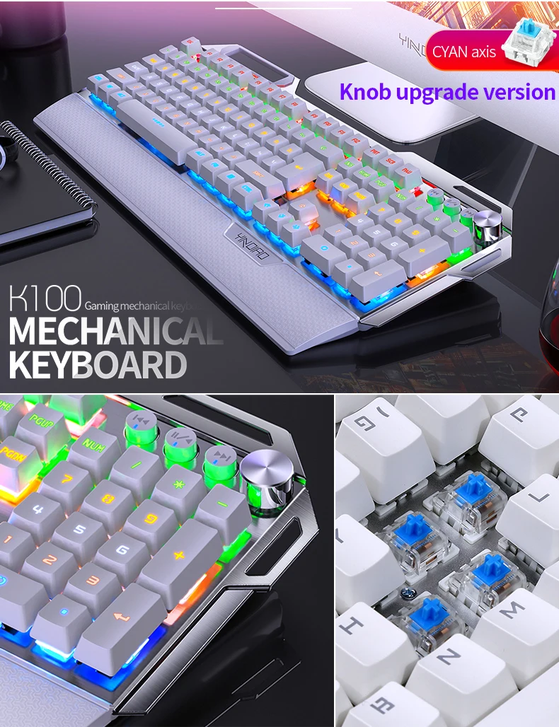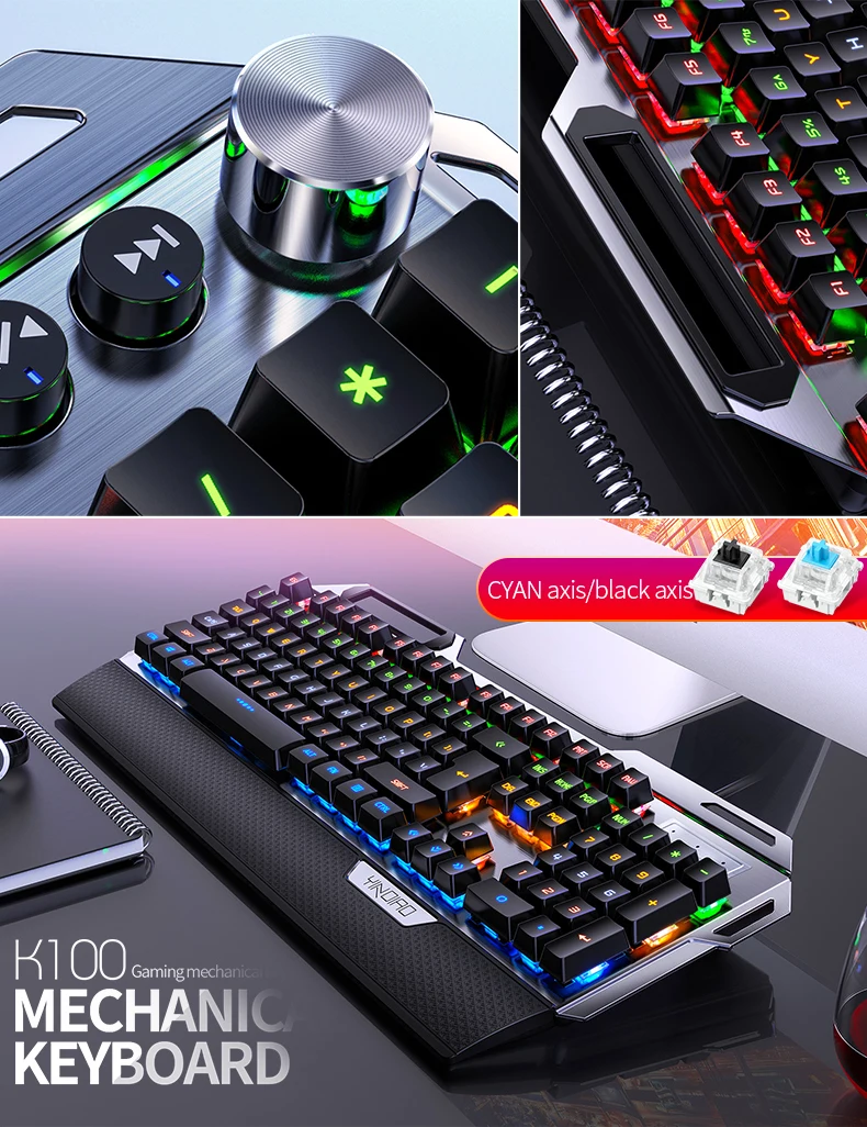 Отзывы о Проводная металлическая Механическая Клавиатура K100 черная/синяя оси светильник
