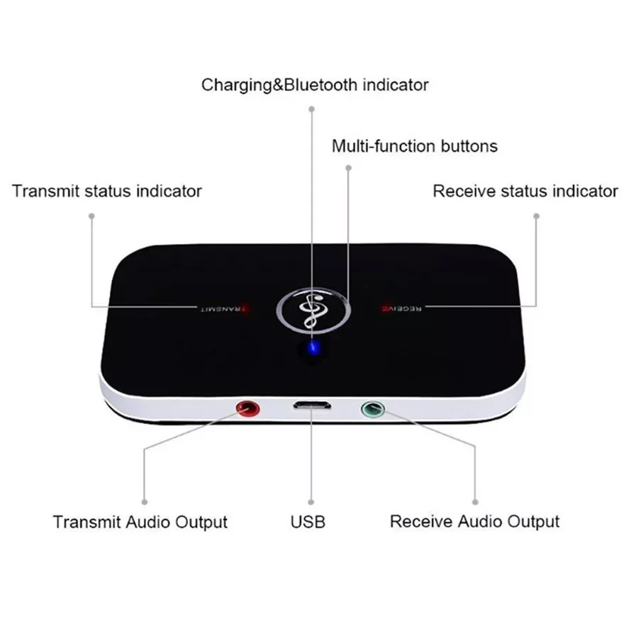 2 в 1 bluetooth-передатчик и приемник, как bluetooth-аудио передатчик, B6 специально разработан для аудиоустройств (например, MP3, MP4, TV и PC и т. д.) без функции Bluetooth. Bluetooth передатчик можно подключать к аудиоустройствам без функции Bluetooth с помощью прилагаемого 3,5 мм аудио разъем, изменение этих аудио-устройств в аудио-устройства с поддержкой Bluetooth, И позволяет работать с bluetooth-гарнитурой и динамиком; В качестве bluetooth-аудиоприемника B6 специально разработан для автомобильной стереосистемы s и домашней аудиосистемы. Он может изменить традиционные автомобильные стереосистемы и домашние аудиосистемы на bluetooth-совместимые и легко соединяется с bluetooth-совместимыми смартфонами, ноутбуками, планшетами и т. д. С помощью этого продукта вы можете наслаждаться музыкой с вашего телефона, ноутбука, планшета без хлопот кабелей.