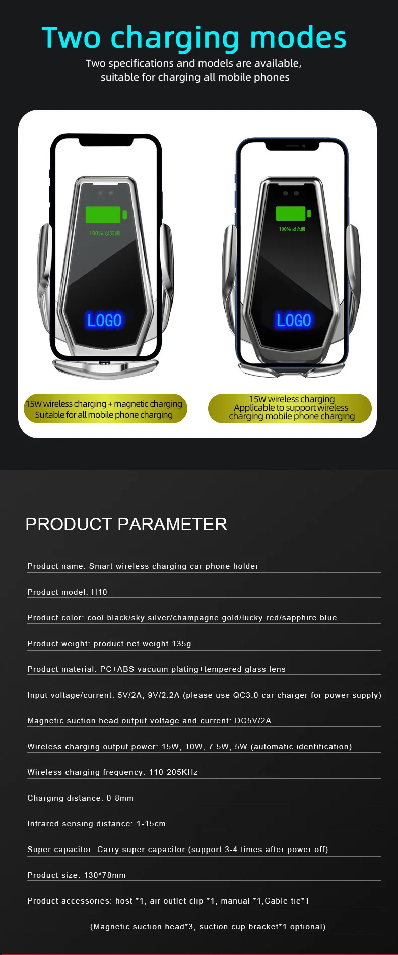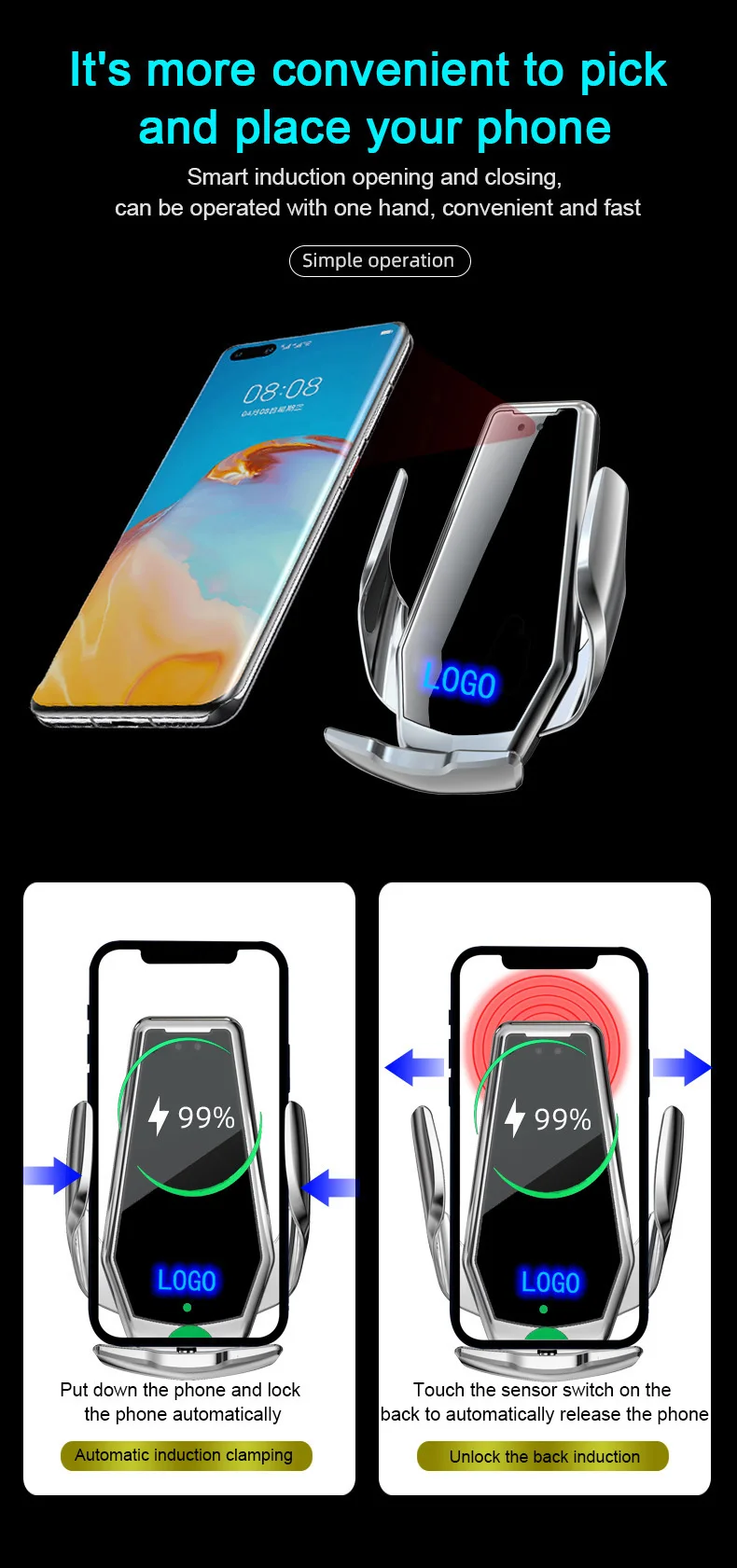 Название продукта:Умный беспроводной зарядный Автомобильный держатель для телефона