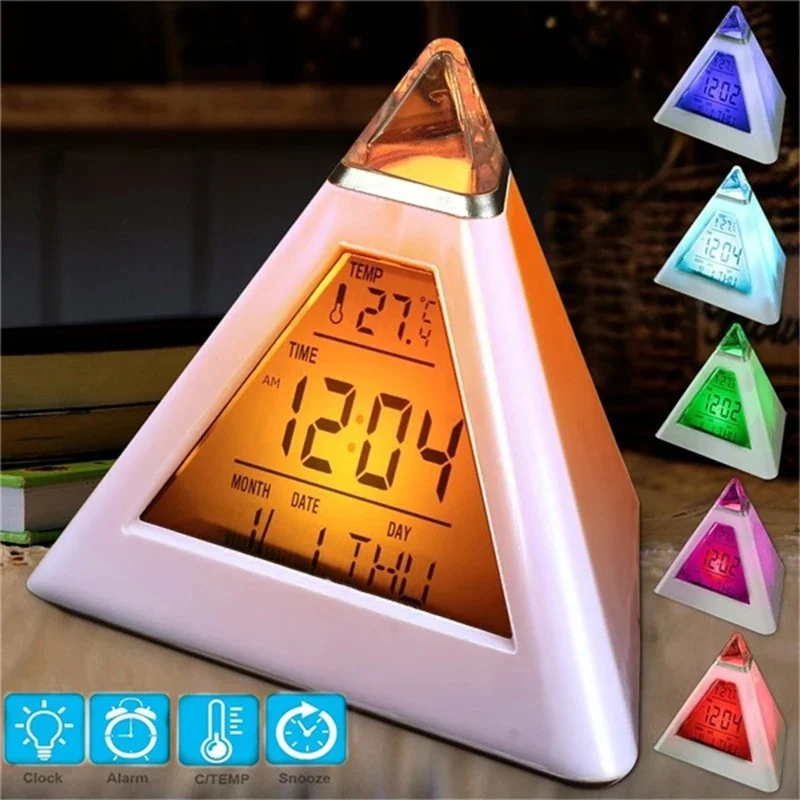 Декомпрессия ленивый будильник температура пирамиды 7 цветов светодиодный треугольный цветной светодиодный Будильник с подсветкой