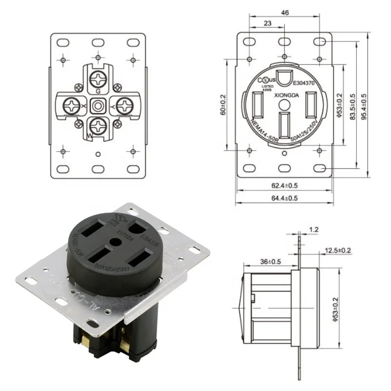 Отзывы о Штепсельная розетка NEMA 14-50R 50 А промышленная электрическая настенная - купить по