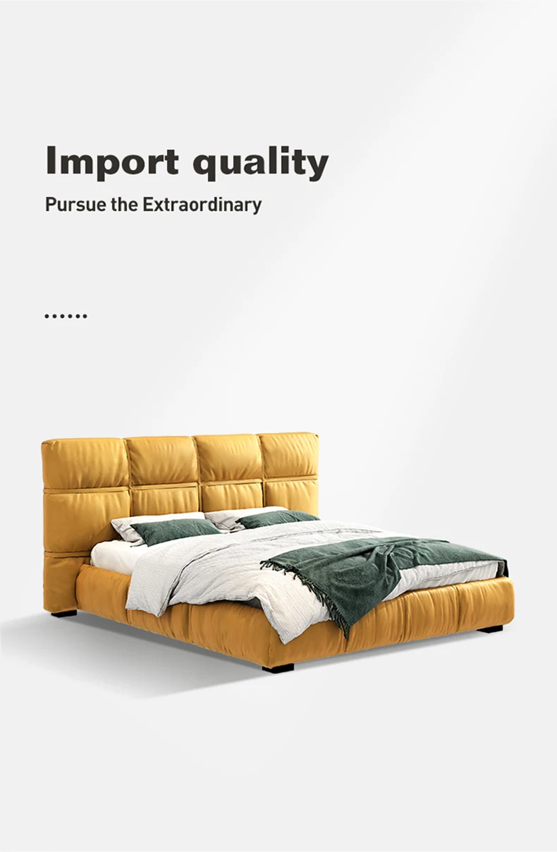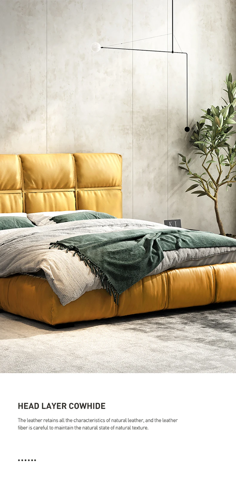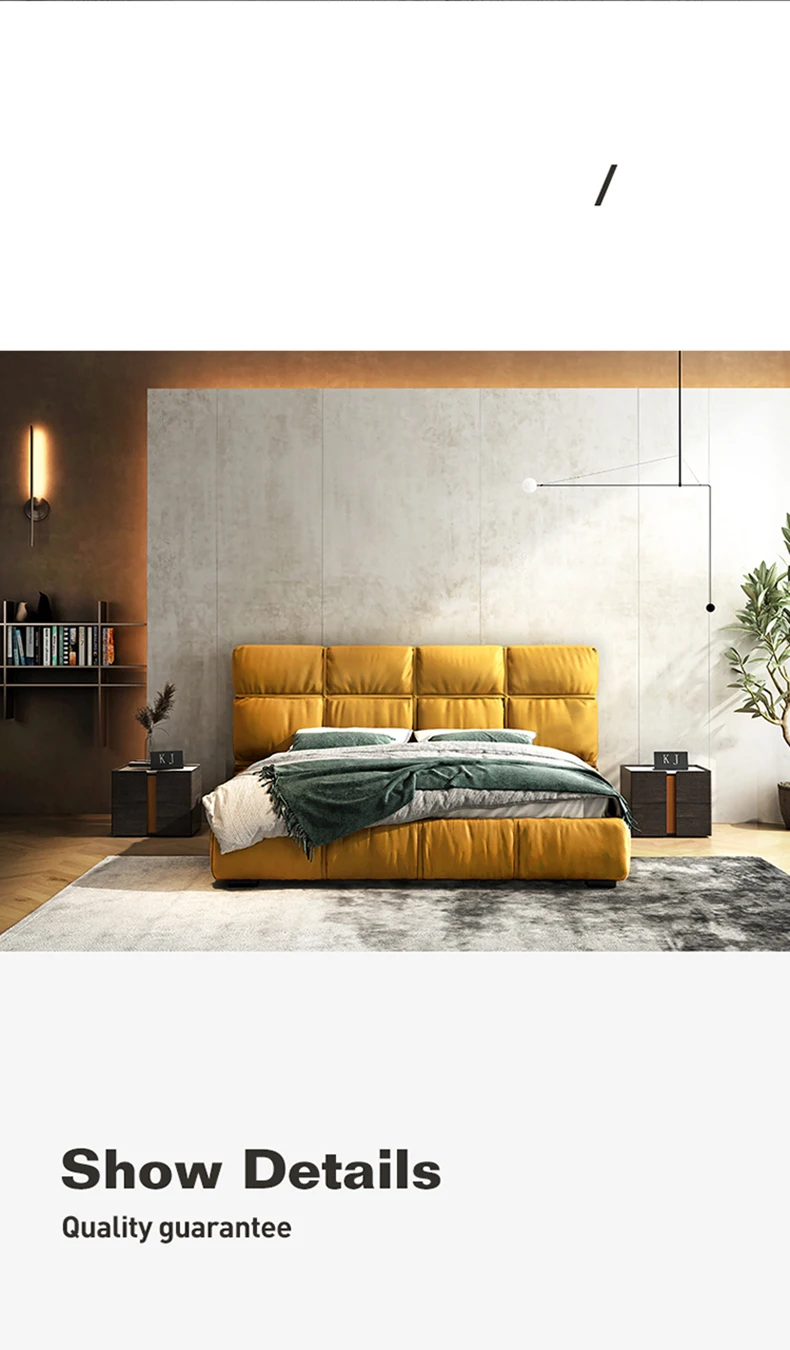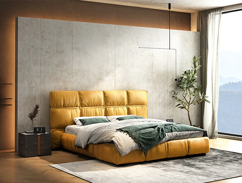 Отзывы о Желтая кожаная рама для кровати с изголовьем современные наборы мебели спальни