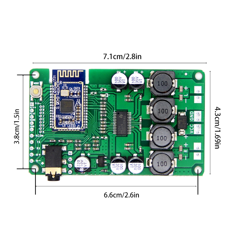 Размер платы усилителя: app.7.1x4.3cm/2.80x1.69in