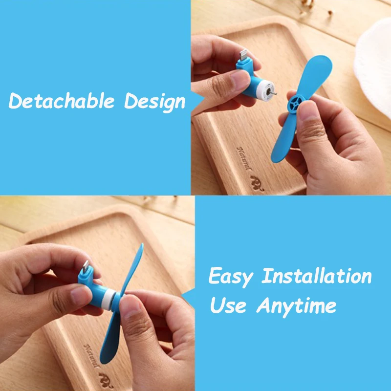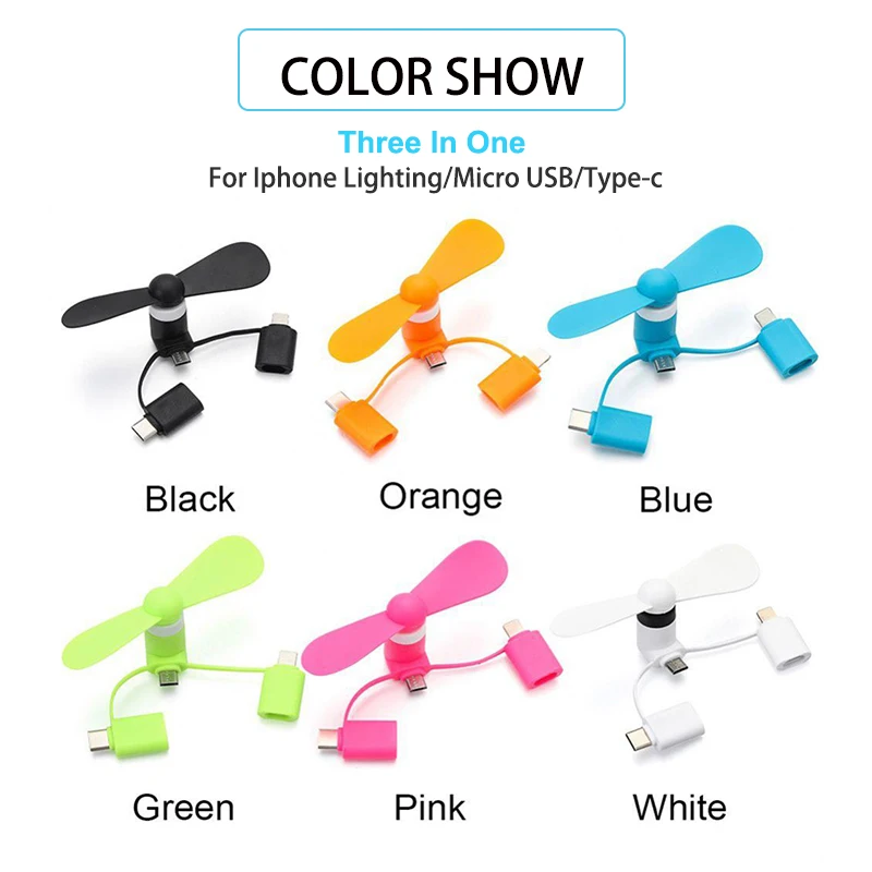 ◆Три в одном мини-вентилятор ---- для iphone lighting/Android/Micro USB/Type-c/pd зарядные устройства.