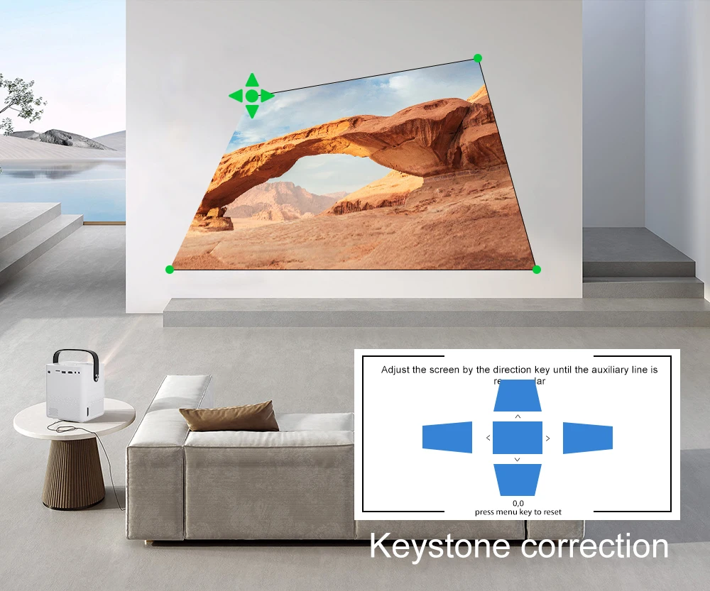 Поддерживает четыре угла коррекции keystone, боковая проекция ± 40%