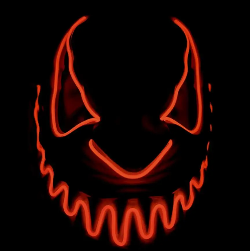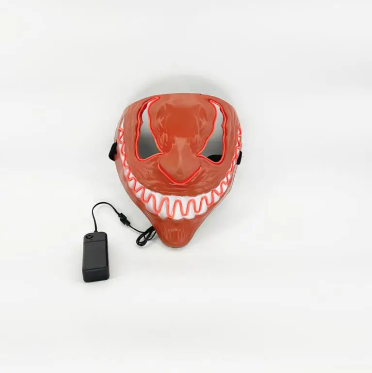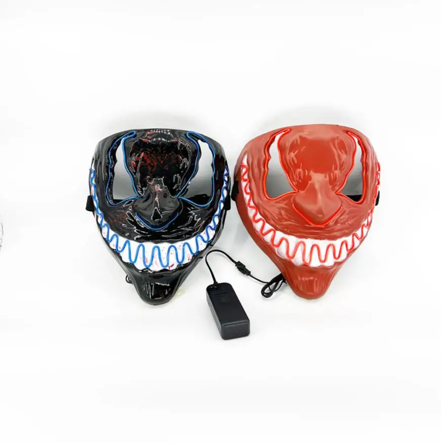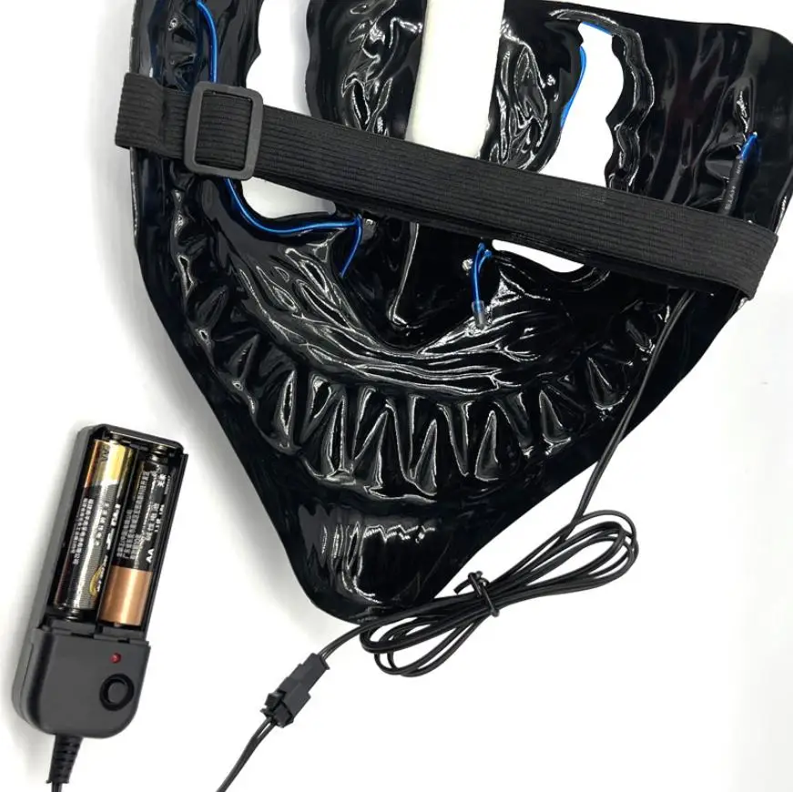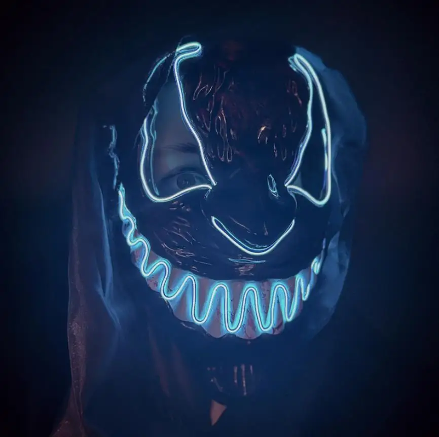 Безопасный и персонализированный светодиодный светильник: светодиодный, три режима управления освещением обеспечивают стабильную, медленную вспышку и быструю вспышку. Выберите любое освещение, которое соответствует вашему костюму на Хэллоуин. Холодный провод EL не вызывает УФ-повреждений. Поэтому светодиодная маска очень безопасна для кожи и глаз.