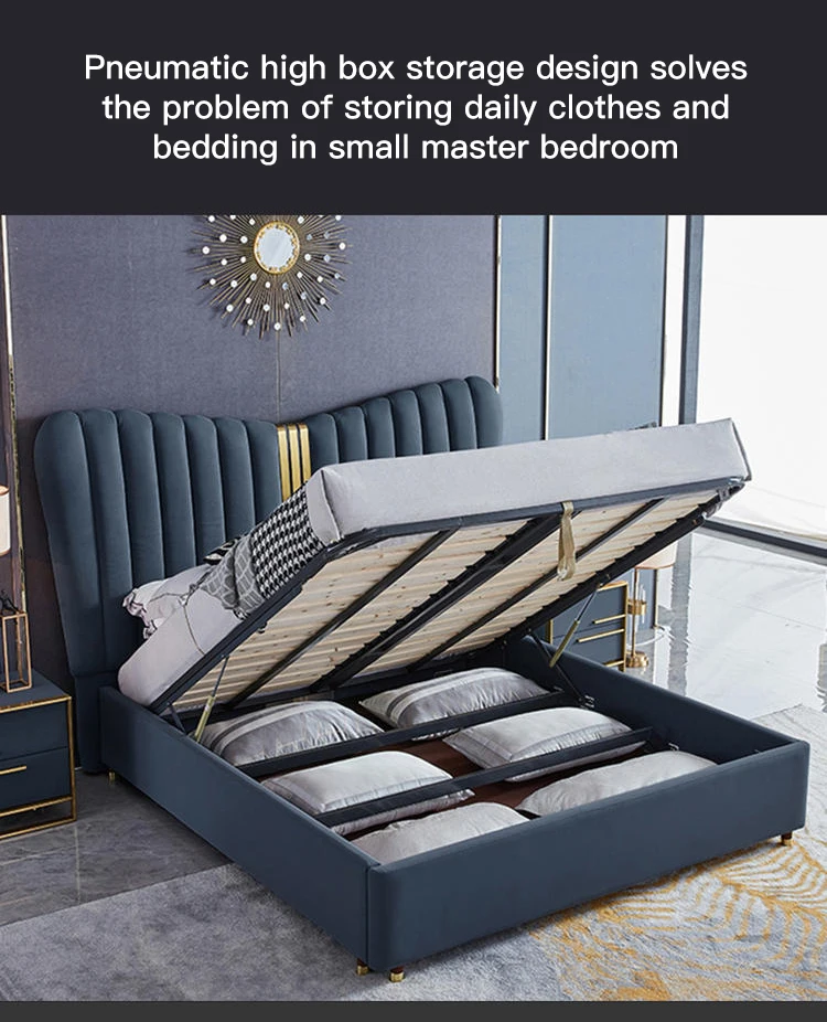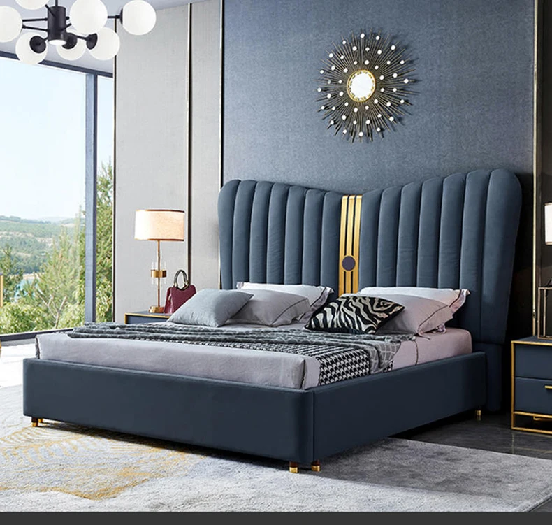 Итальянская роскошная двуспальная Кровать с вертикальными спинки стабильной рамка темно-синего цвета, элегантное, Спальня комплект Двухспальная Кровать سرير مزدوج للكبار
