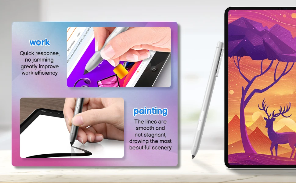 【Точный и гладкий 】 точный эскиз и оттенок с 1024 точками чувствительности давления, которые реагируют на легкое прикосновение, стилус для поверхности чувствителен и обеспечивает точный опыт письма и рисования. Естественно пишите и рисуйте. Без задержек.