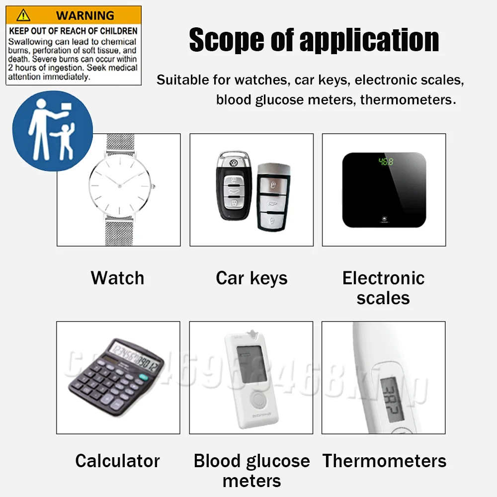 Используется для: игрушек, калькуляторов, лазерных указателей, часов, часов, компьютеров, игр, цифровых диктофонов, измерителей уровня глюкозы в крови, КПК, дистанционного управления, электронных Инст.