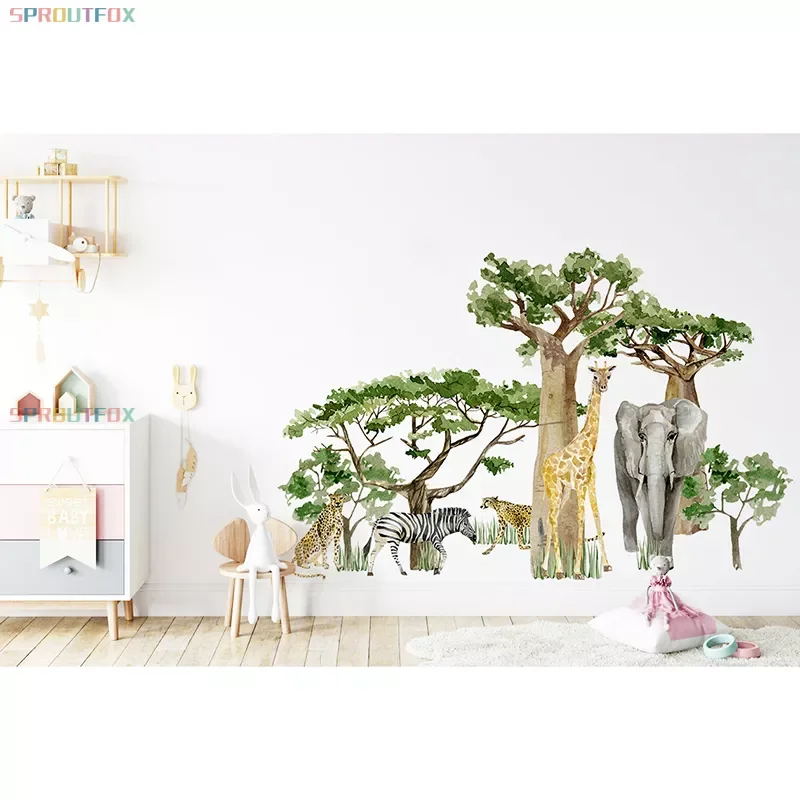 Большие Животные Слон Жираф Зебра Леопард наклейки на стену для детских комнат спальни для маленьких мальчиков