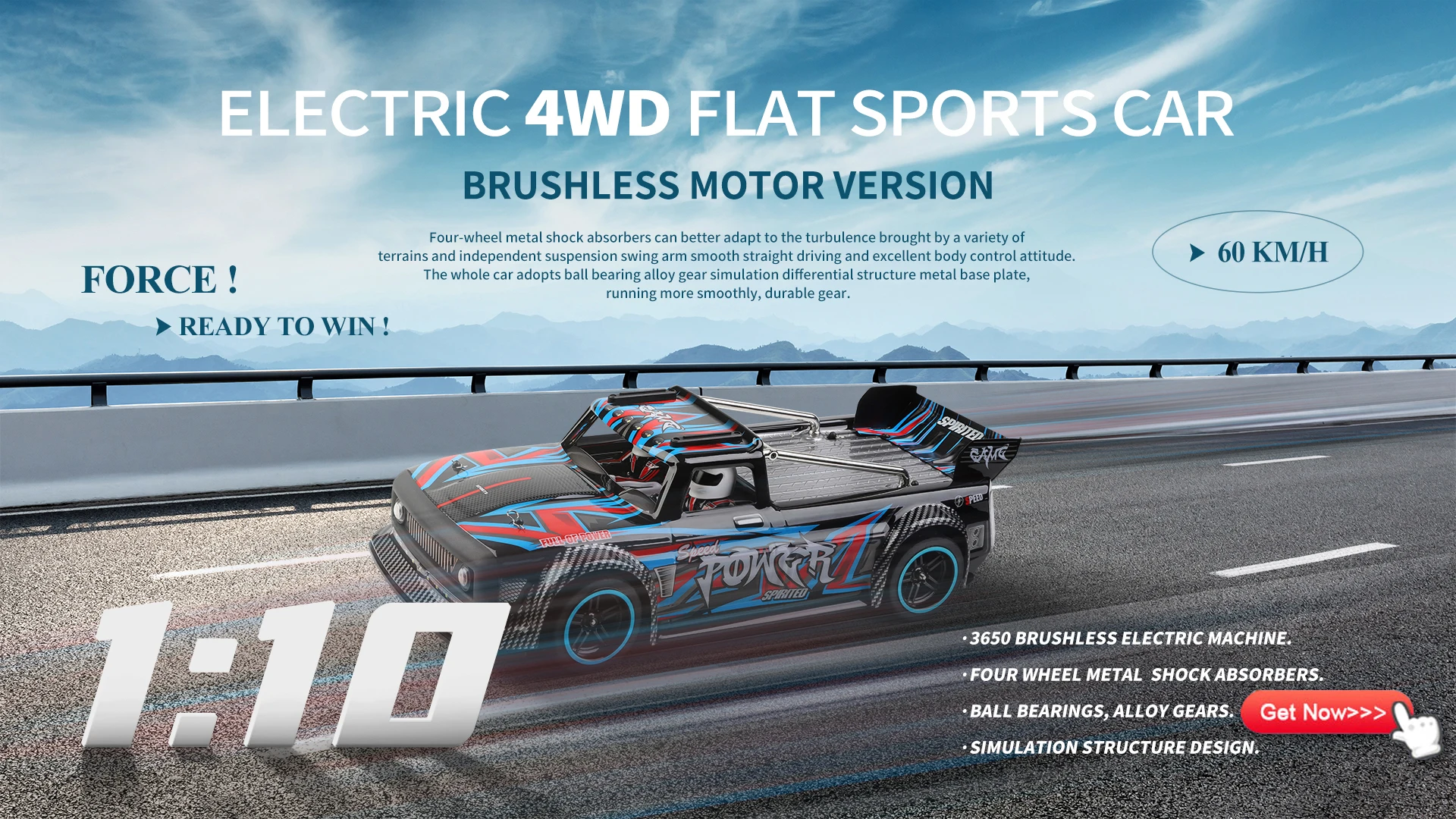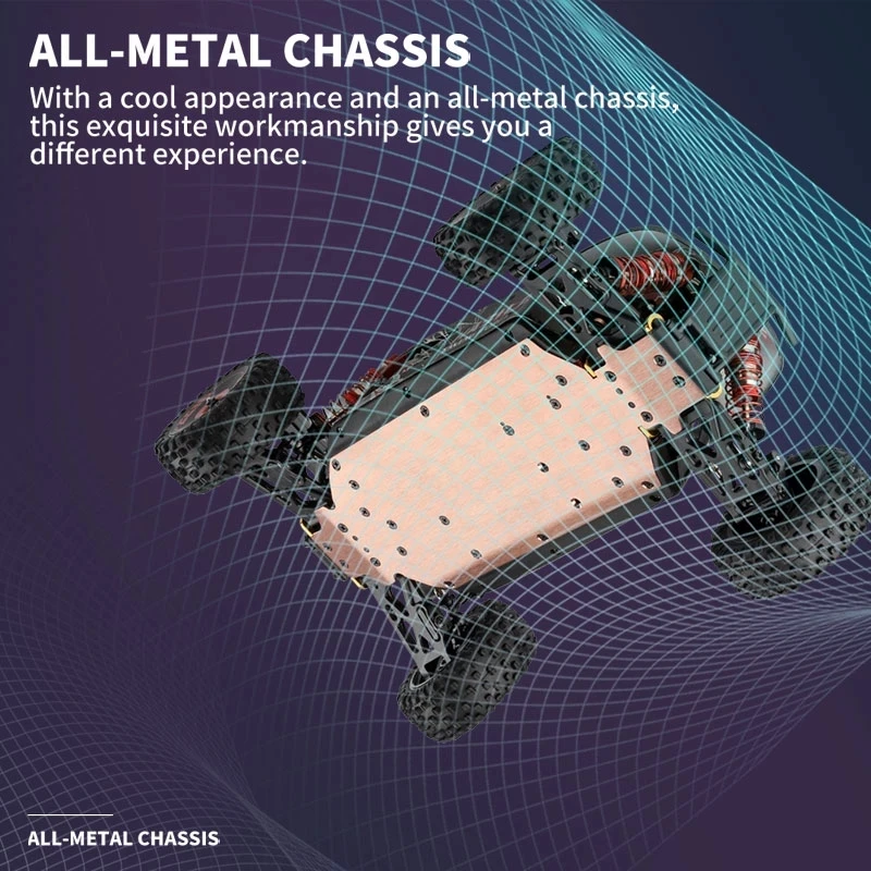 Максимальная скорость 75 км/ч: Используйте супер бесщеточный мотор-магнит, электрическая энергия преобразуется в мощность максимально, 4 колеса для гоночного автомобиля могут обеспечить сильный крутящий момент мощности, что значительно упрощает работу автомобиля. Рожден чемпионом.