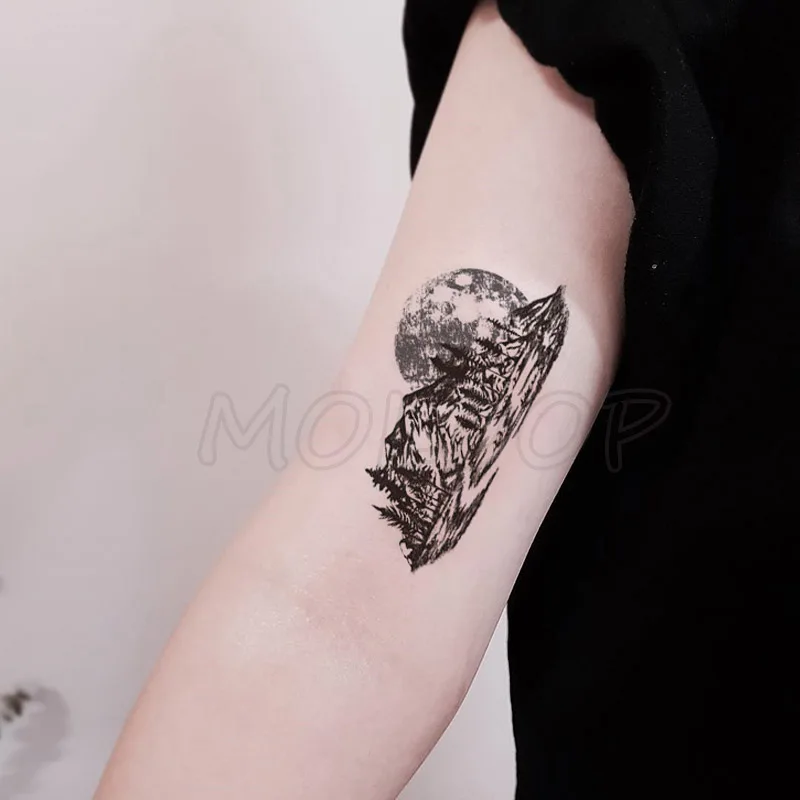 Отзывы о Тату-наклейка с лесными горными деревьями планетами луной черная маленькая