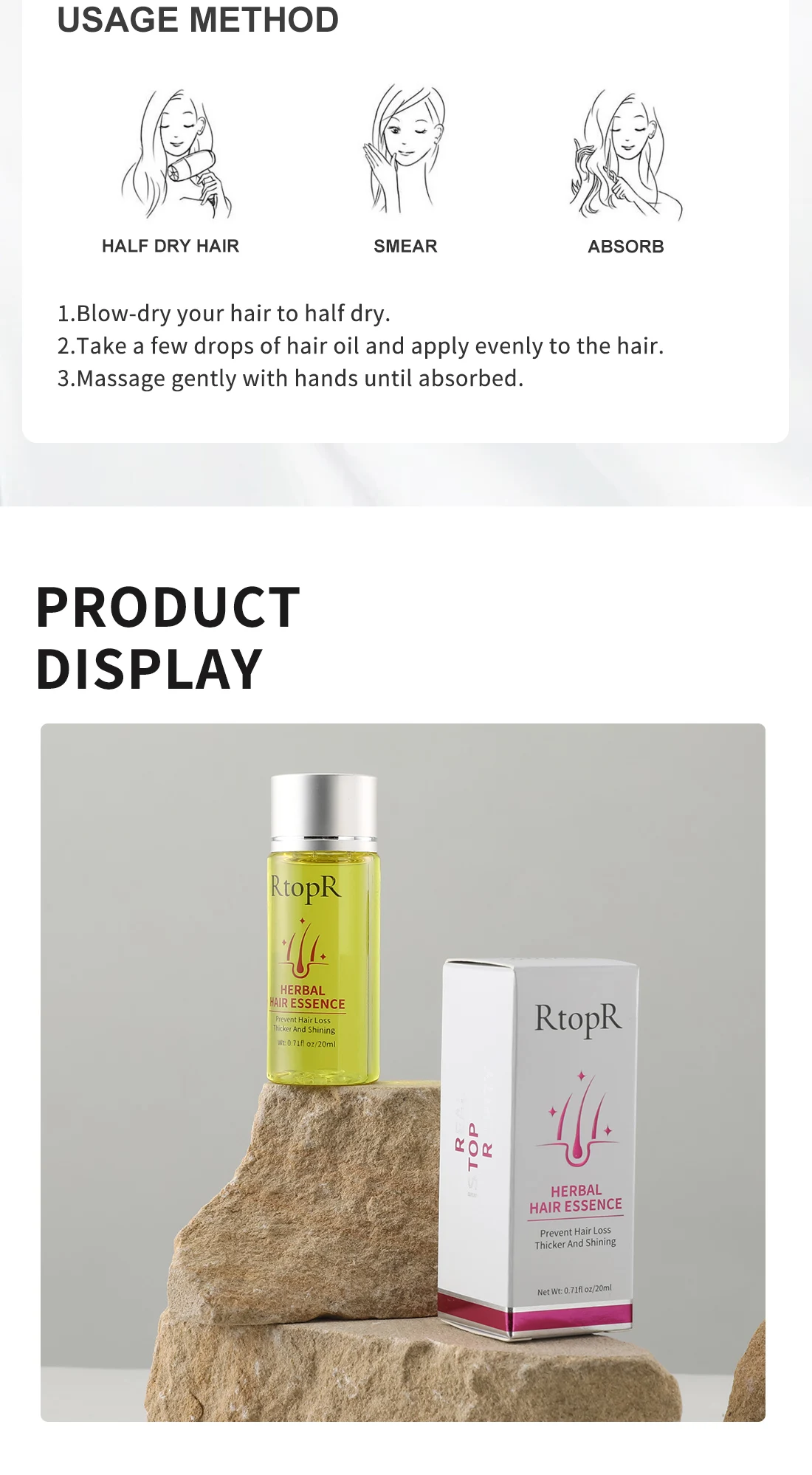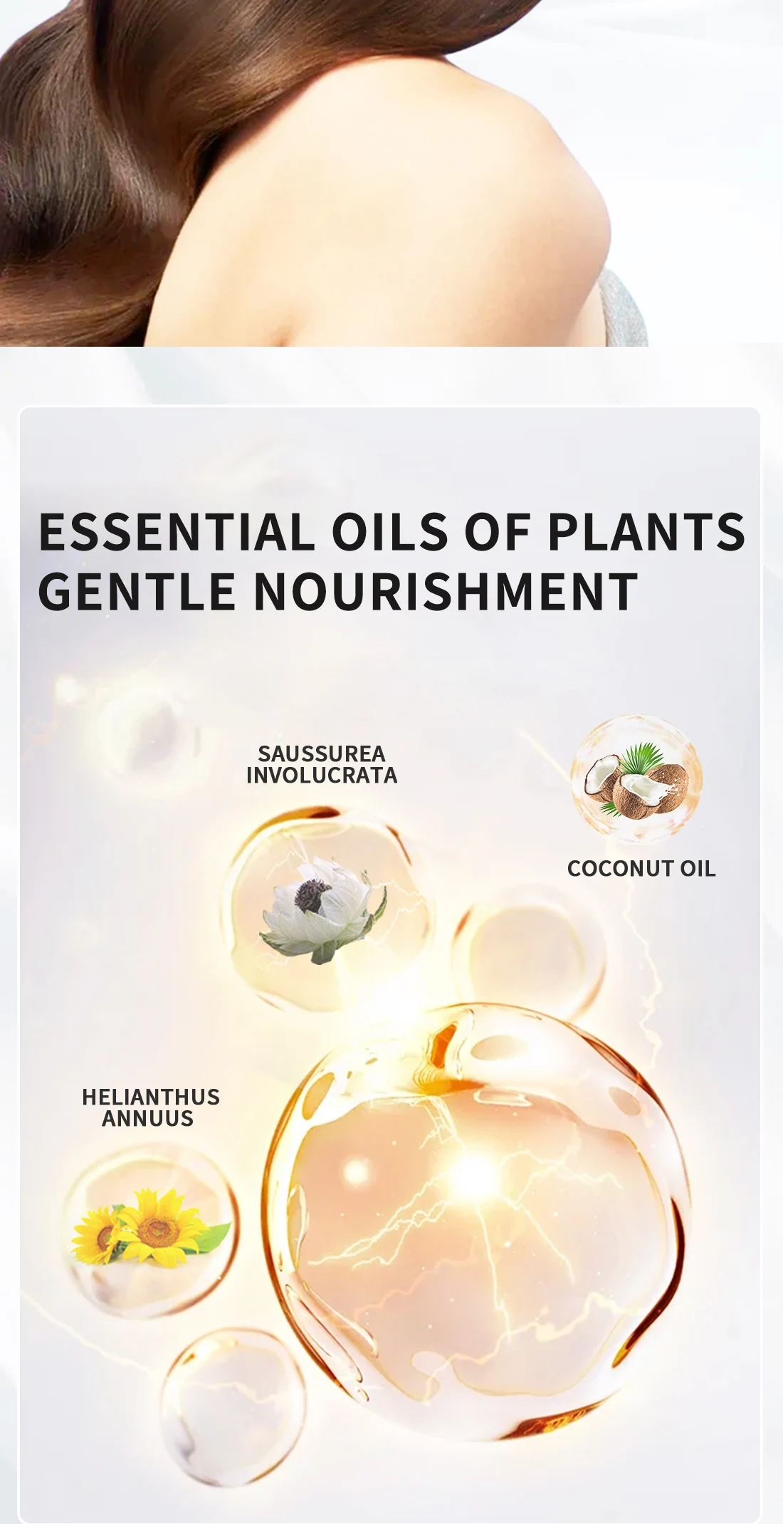 Богатое разнообразными растительными цветами эссенцией масло, способствует росту волос, углубляет волосяные фолликулы, улучшает выпадение волос и восстанавливает сухие, грубые проблемы с волосами. Сделайте ваши волосы мягкими, густыми, черными и яркими, излучающими приятные цветы. Вы заслуживаете иметь это и красивое состояние волос.