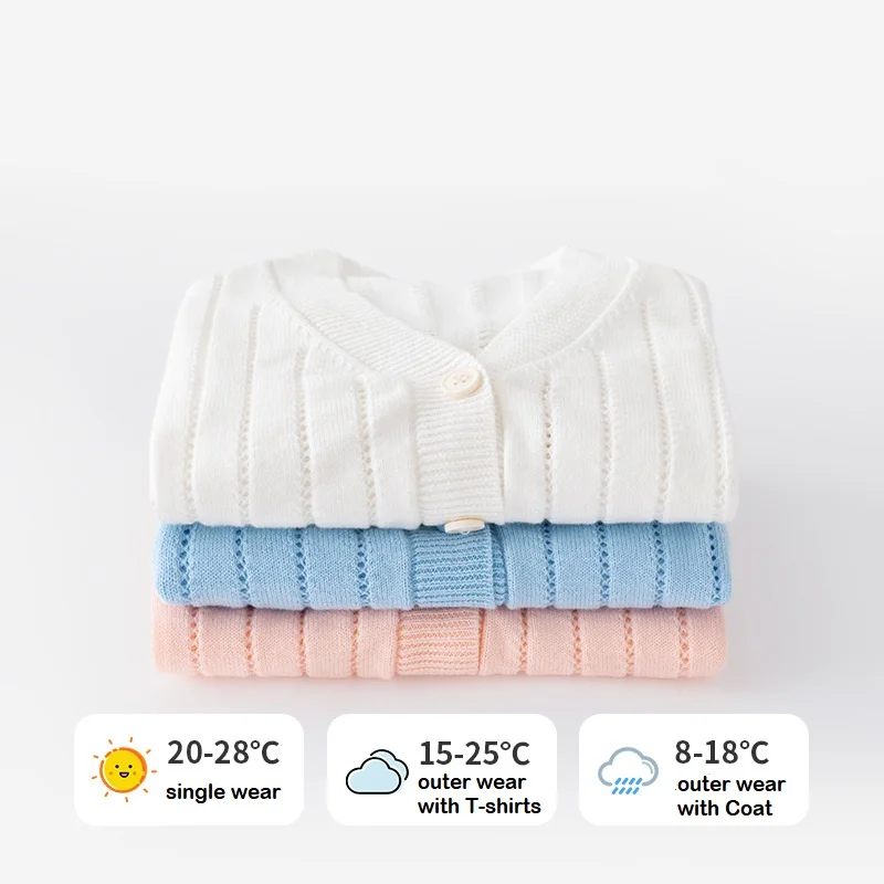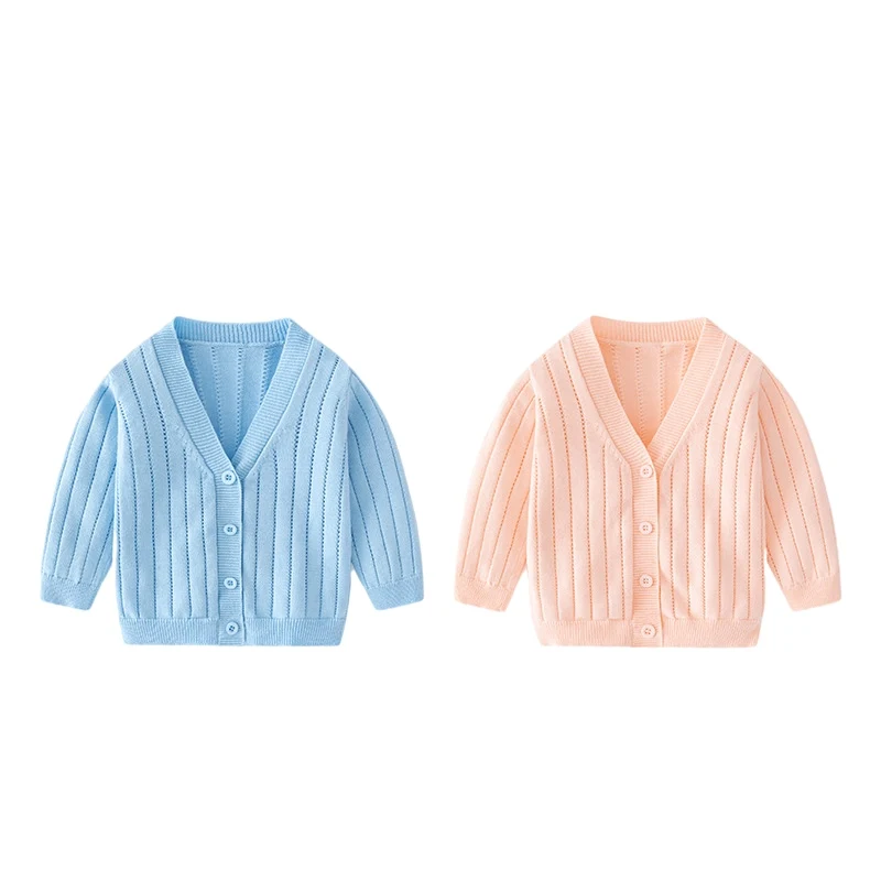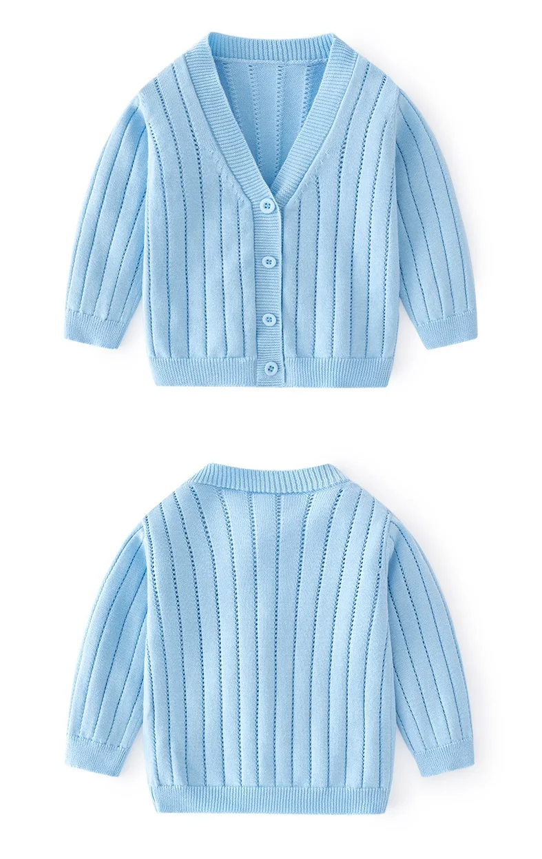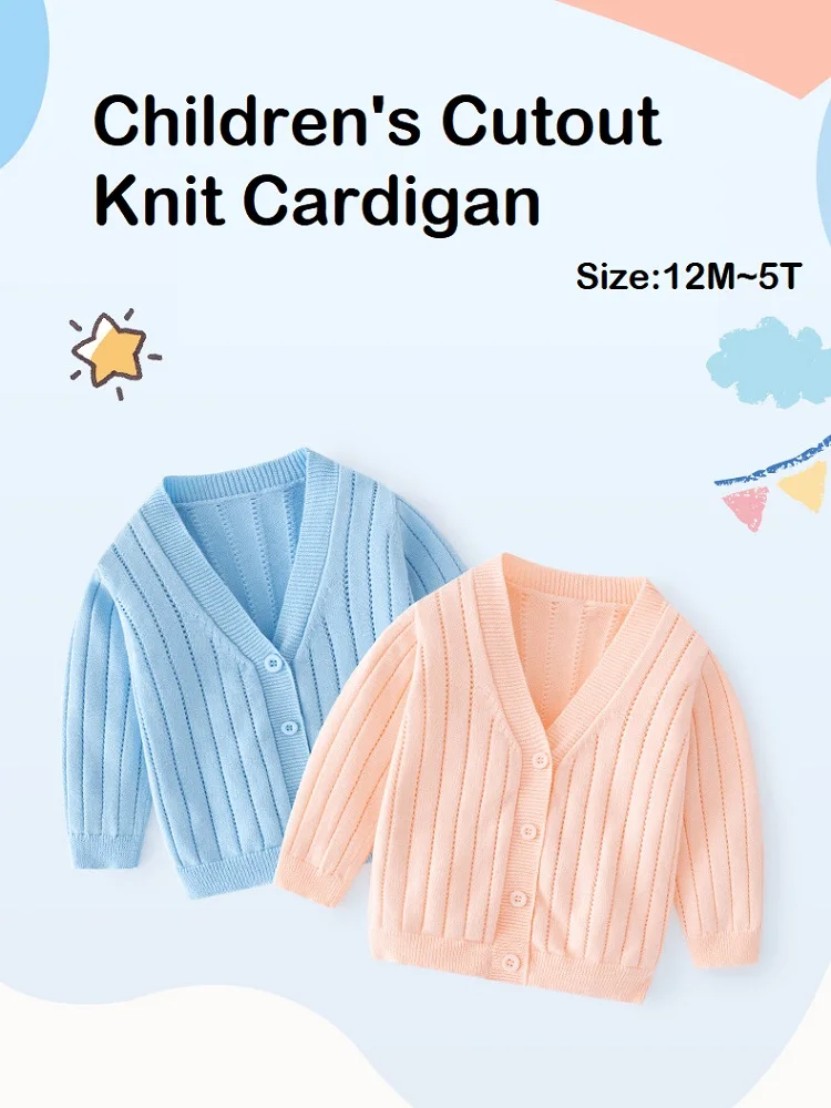 Отзывы о Однотонный вязаный детский кардиган с вырезами на весну и осень из чистого