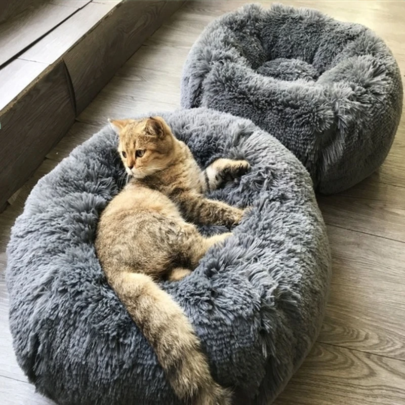 Длинная плюшевая подушка для собаки, кровать для питомца, диван, супер мягкий пушистый удобный коврик для кошки, собаки, дом, кровать, Круглый кот, зимняя теплая кровать, кровати для питомца