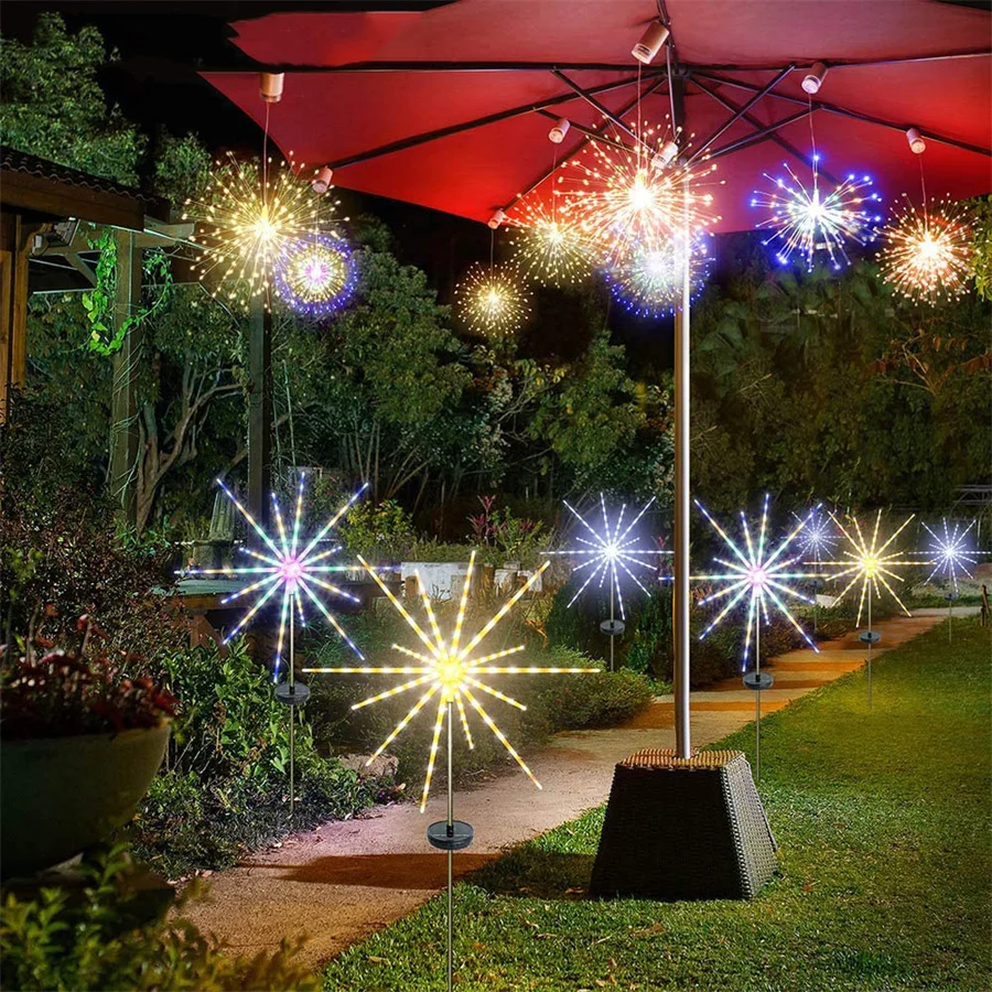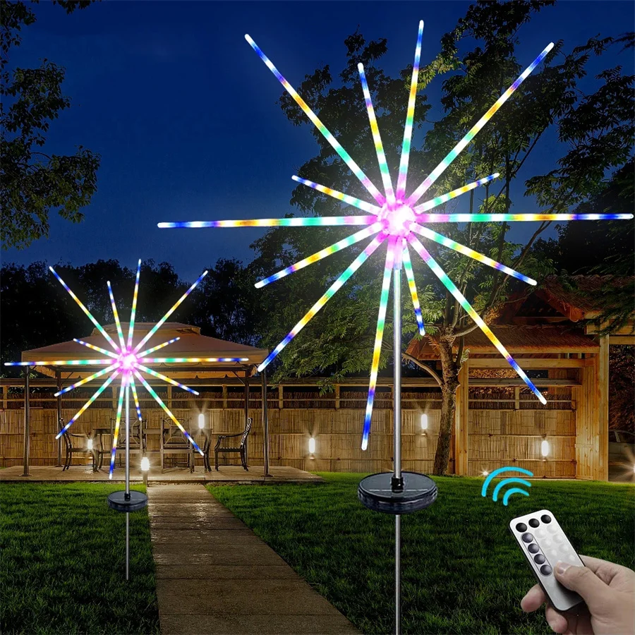 Наружное солнечное декоративное освещение сада с дистанционным управлением, 8 режимов ландшафтного звездного взрыва.