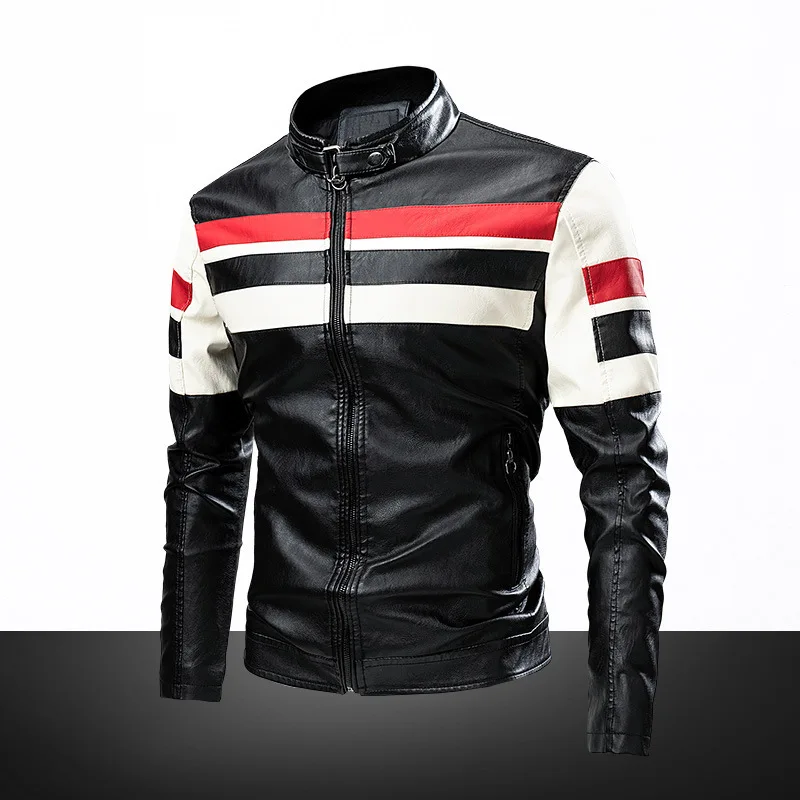 Отзывы о Мужская кожаная куртка-бомбер черная ветровка из искусственной кожи в полоску на