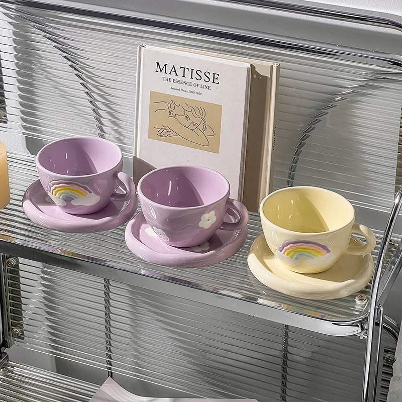 Новая ручная Раскрашенная Радужная чашка с блюдцем