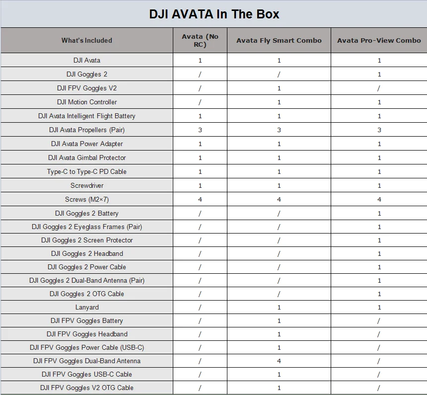 В чем разница между DJI Avata, DJI Avata Pro-View Combo и DJI Avata Fly Smart Combo?