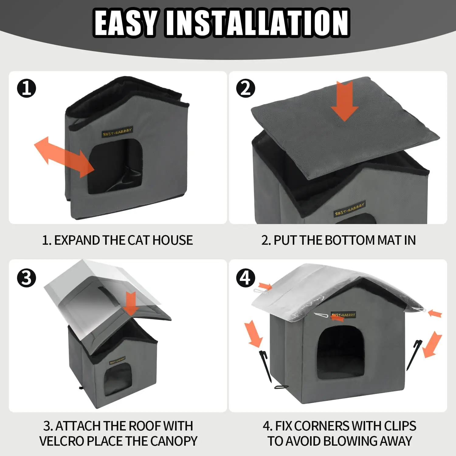 Если вы ищете Прочный, прочный и изолированный Домик для кошек защищает ваших милых домашних животных или вашего бедного соседа от плохой погоды, остальное-Eazzzy крытое/уличное кошачье укрытие предложит рай! Он модернизирован и установлен, будет полностью водонепроницаемым и будет держать домашних животных или соседа в тепле и сухом состоянии, когда они спят и расслабляют. Дома для кошек очень удобные, и Обеспечьте кошке сильное чувство безопасности, Какое боковое отверстие дает кошкам Личное пространство.