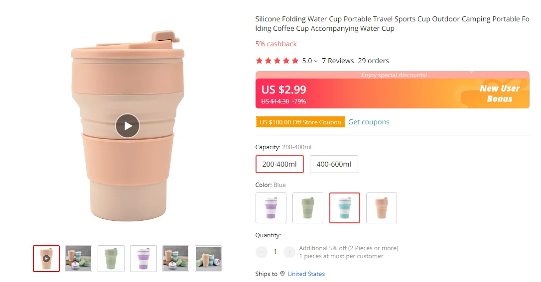 Отзывы о Силиконовая складная чашка для воды портативная Дорожная Спортивная уличная
