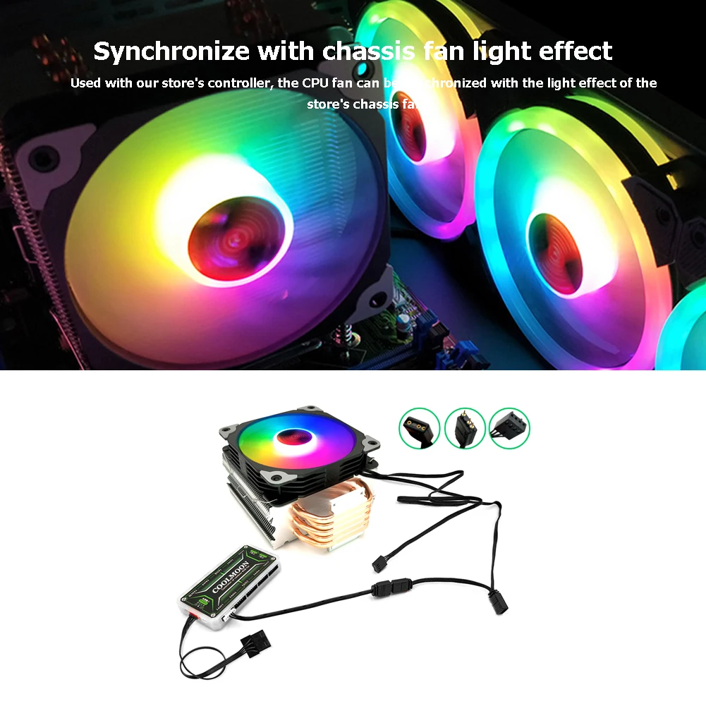 2. 5V 3-контактный по 4 pin кабеля: передавать ARGB Процессор вентиляторы, устройство чтения карт памяти, жилеты, светильник, бары, светильник доски и другое оборудование с выходом 5V 3-pin к 4Pin вентилятор на Coolmoon контроллер для того чтобы осуществить единый контроль в светильник с контроллером. Вентилятор синхронизирует цвет.