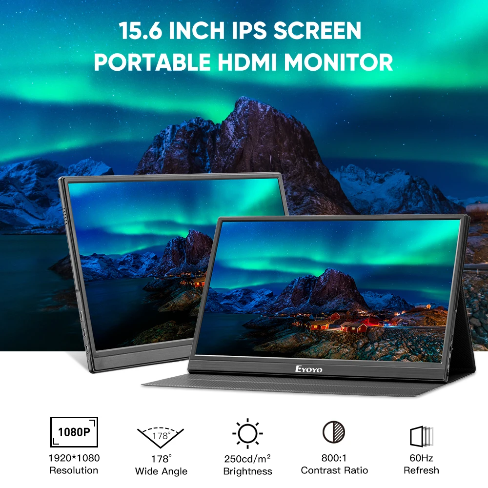 Отзывы о Eyoyo 15.6 Inch Portable Monitor HDMI Type-C 1080P HDR IPS Screen Dual Speaker Gaming Display For Laptop Phone Xbox PS4 Switch - купить по