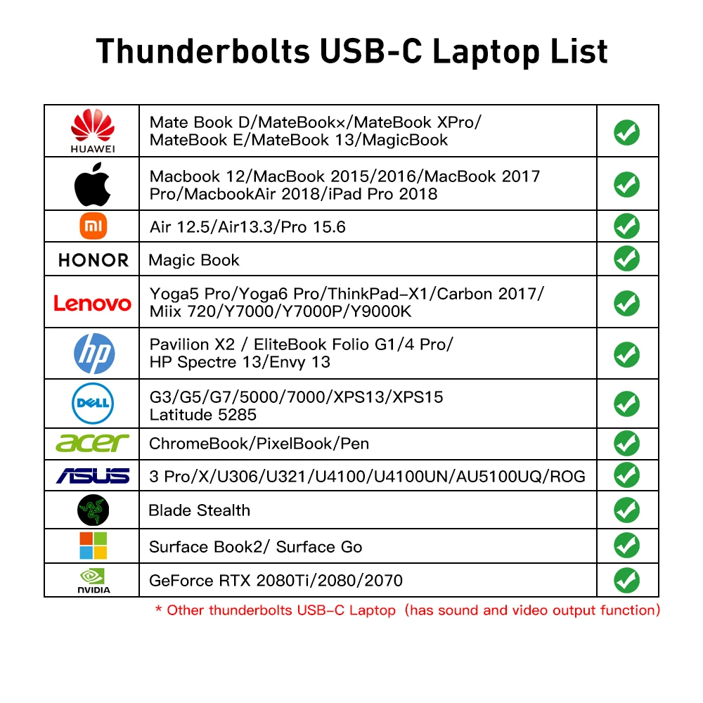 3. С 2 входами Type-C один из интерфейсов используется для зарядки. Еще один отлично работает с Huawei mate 10/20, P20/P20 pro, Samsung S8/S8 +/S9/S9 +/Note 8/Note9, Nintendo Switch, Macbook Por 2016/17/18 и т. Д.