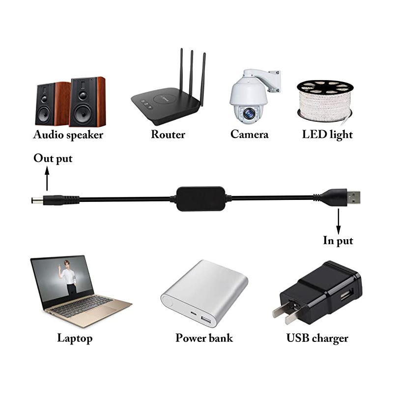 - Этот кабель подходит для многих устройств питания 5 В, наиболее распространенным является мобильный источник питания. Он также может поддерживать ваши устройства 9 в, такие как мини-вентиляторы, настольные лампы, mp3, bluetooth-колонки, Wi-Fi роутеры и т. д. (пожалуйста, сначала проверьте ваше оборудование, чтобы увидеть, подходят ли они к кабелю)