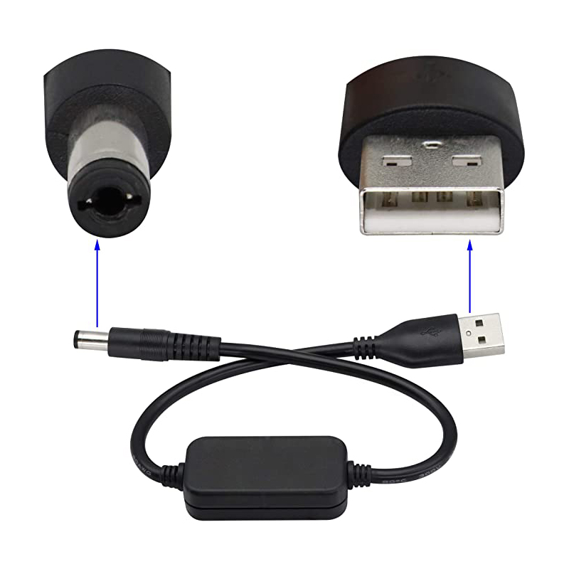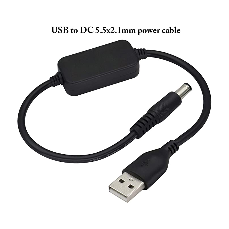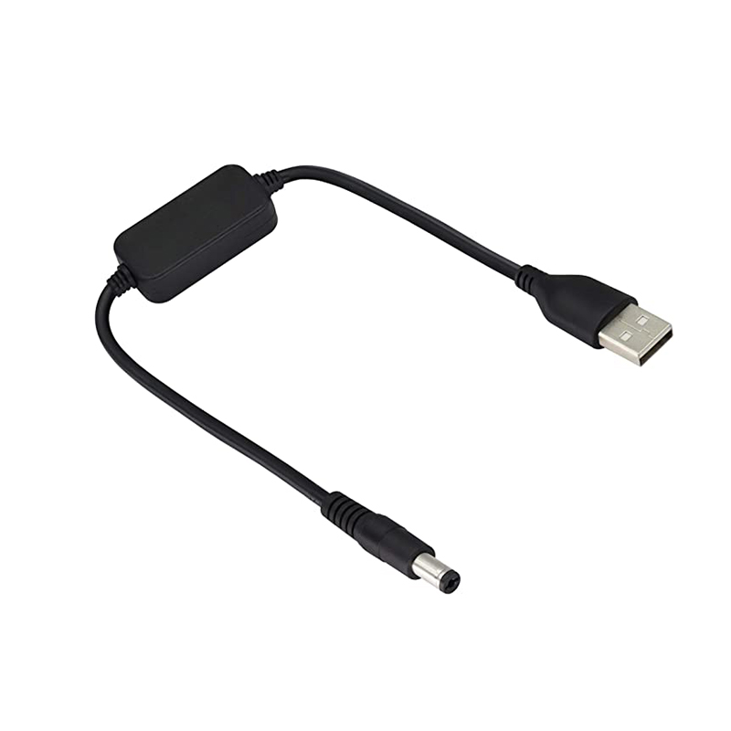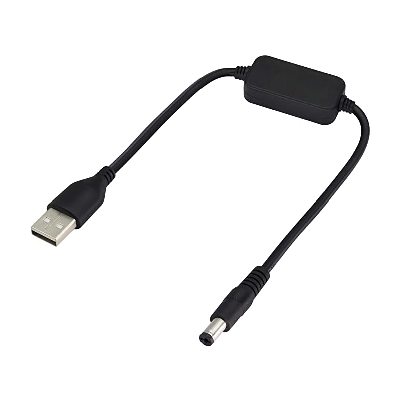 - "USB A 2,0 папа в DC5.5 * 2,1 мм штекер boost разъем. Входное напряжение: USB A 5V male; Выходное напряжение: 12V DC5521 male. Примечание: кабель boost поддерживает Рекомендуемый максимальный входной ток 5 в 2A и максимальное выходное напряжение 12 В 0,8a. Когда обнаружится, что устройство не может работать, проверьте, превышает ли ток или напряжение входного или выходного устройства предел кабеля».