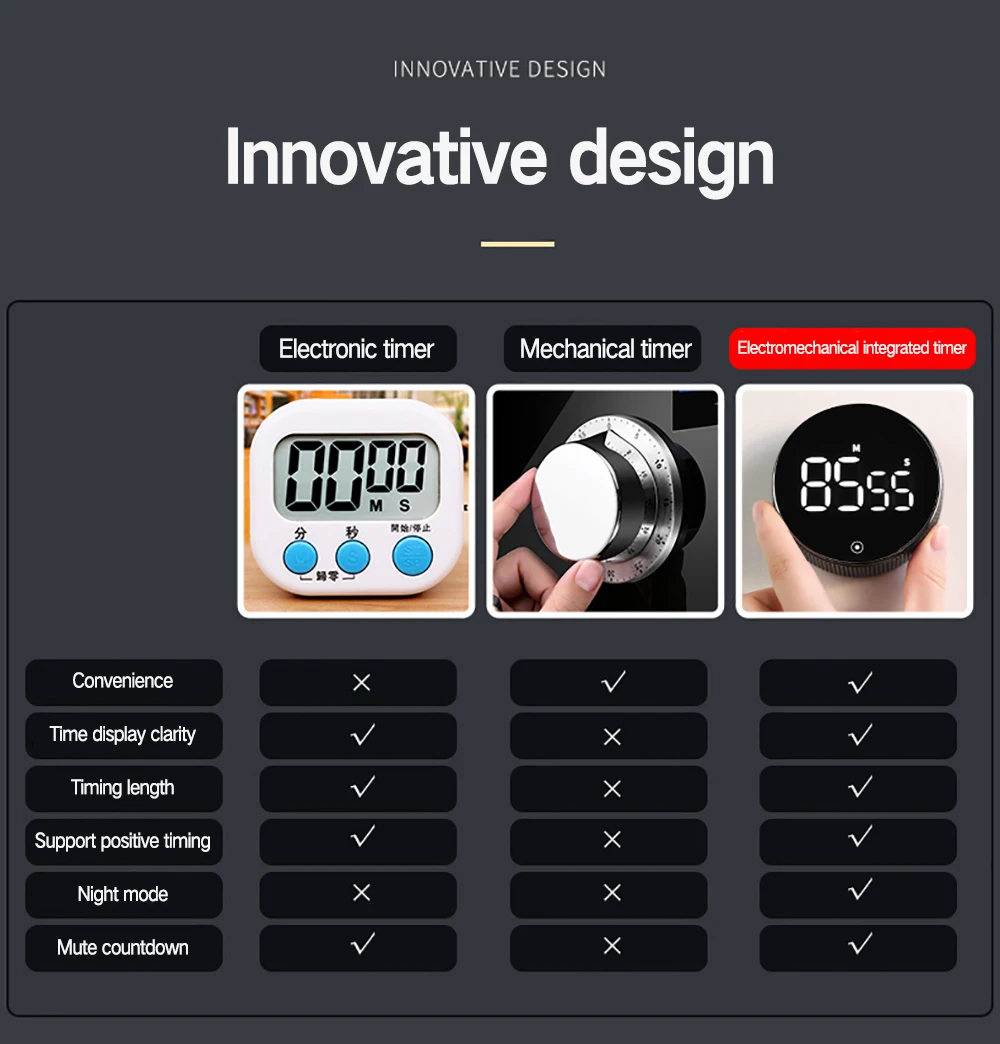 Применение: Этот СВЕТОДИОДНЫЙ ПОВОРОТНЫЙ цифровой таймер очень подходит для приготовления пищи, выпечки, обучения, медитации и фитнеса.