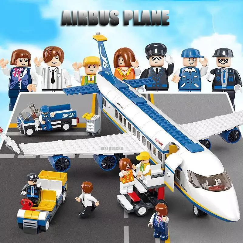 Название блоков: модель самолета, строительные блоки