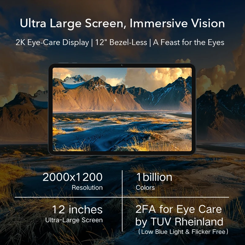 12-дюймовый 2K HONOR FullView Дисплей, с одной трети выше видимой области, чем типичный 10,4 дюймовых планшетов, с соотношением экрана до 87% 2, для визуального наслаждения на флагманском уровне.