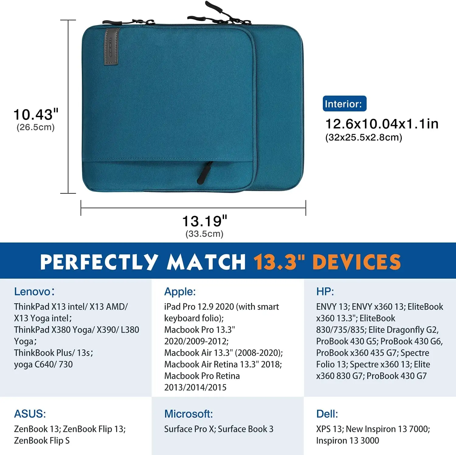 Совместимость:Рукав сумка предназначена для устройств до 13,3 "и подходит для смарт-клавиатуры. Подходит для Macbook Pro 13" M2 2022/Pro M1 Pro/M1 Max 14,2 2021 Macbook Air 13,6 "M2 2022/Air 13,3 2019/2020/Pro 13,3 2020, iPad Pro 12,9 M1 2021, iPad Pro 12,9" 2015, iPad Pro 12,9 "2020 (с Умной клавиатурой folio), Galaxy Tab S8 + 12,4 ", Surface Pro 8, Chromebook Flex 5 13"/Spin 13, Surface Laptop Go 12,4 ", Surface Pro X/3/4/5/6/7, surface Book 3, ThinkPad X13 intel 13,3" 2020, ThinkBook Plus 13,3 "2020.